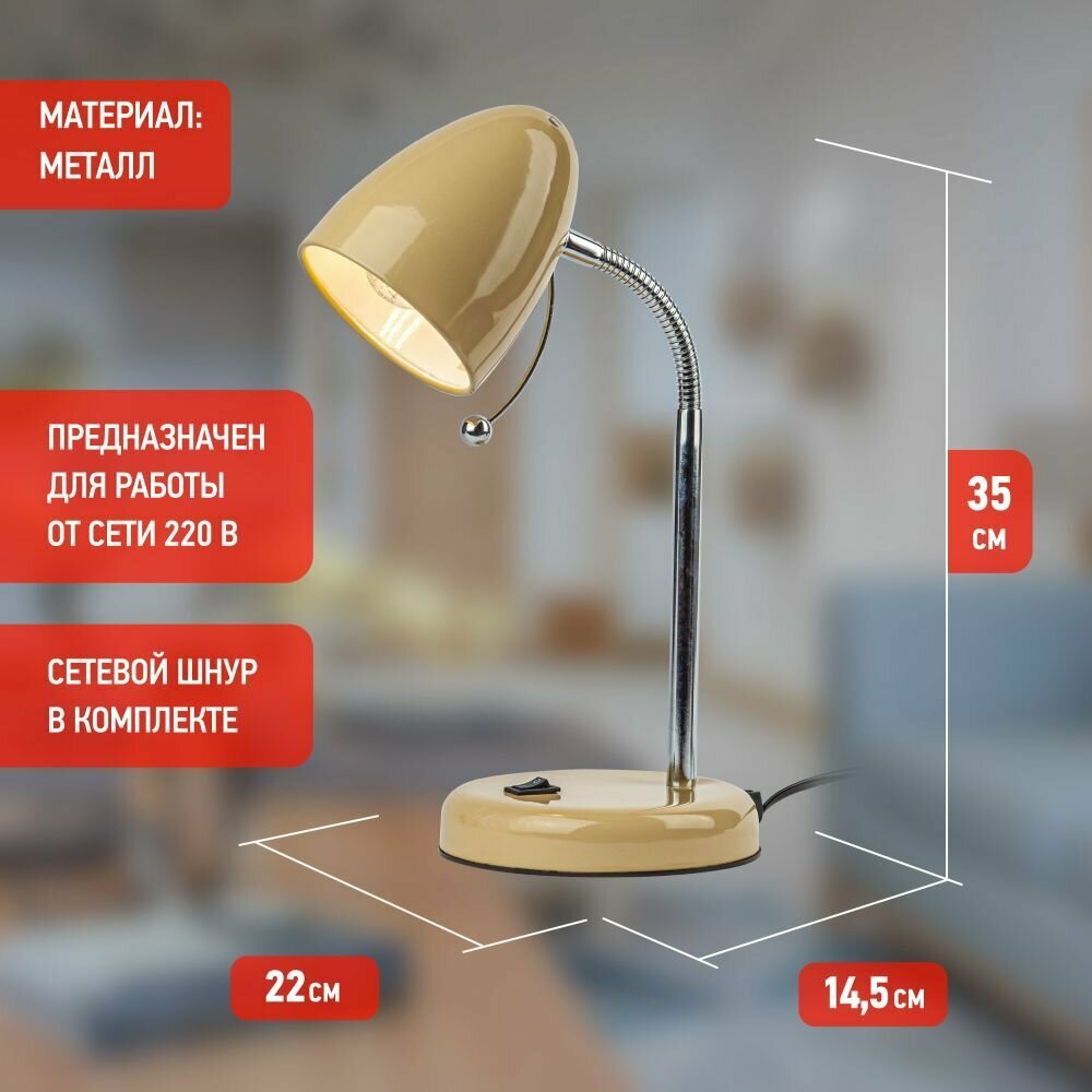 Купить Лампа настольная E27 офисная для школьника ЭРА N-116-Е27-40W-BG хай-тек, ретро, лофт, бежевый