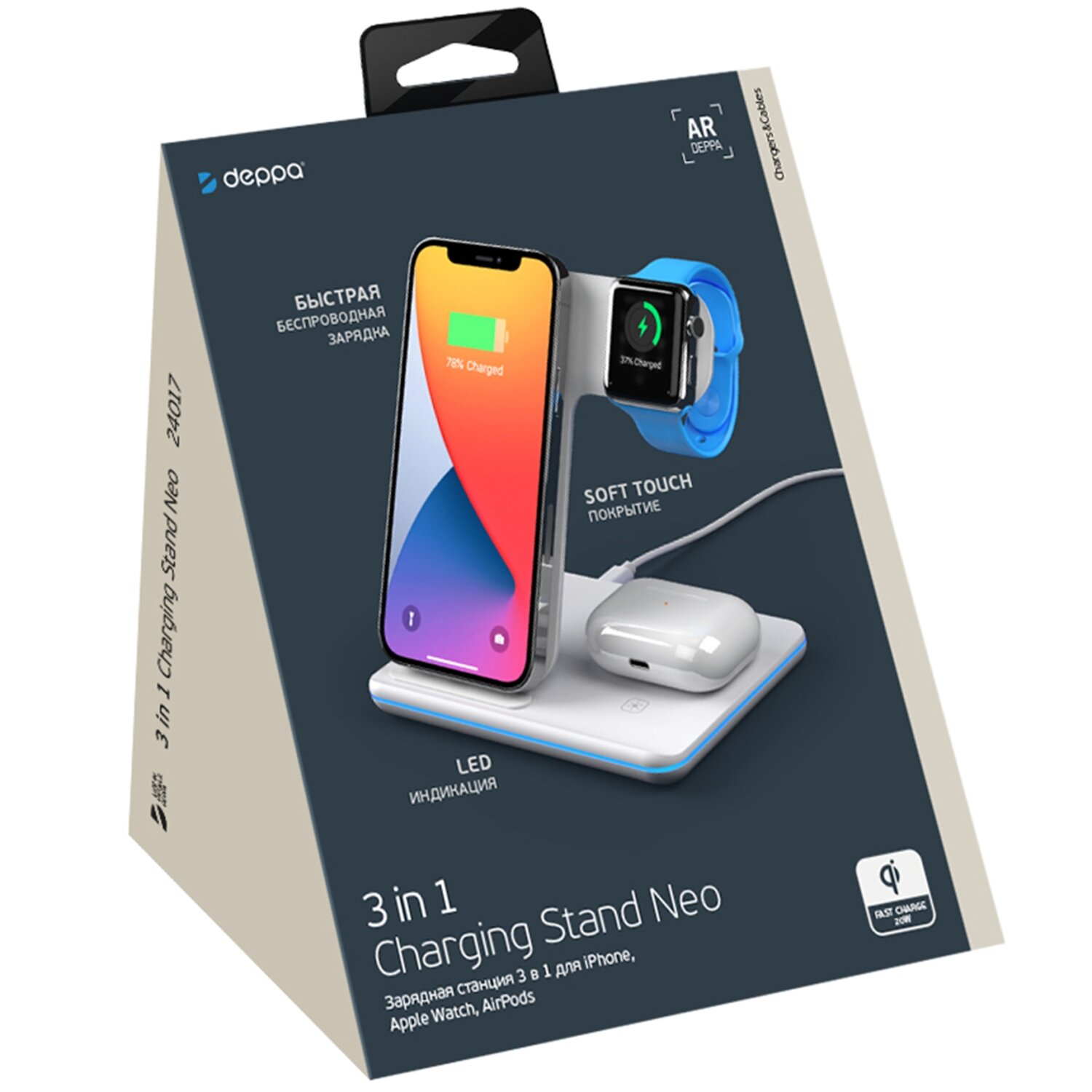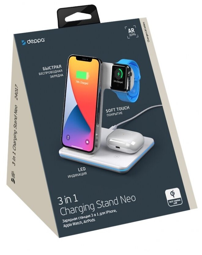 Беспроводное зарядное устройство Deppa 3 в 1 Charging Stand Neo: iPhone, Apple Watch, Airpods, 20 Вт 24017