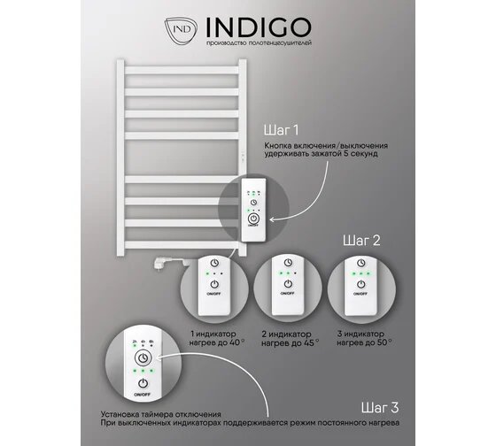 Полотенцесушитель электрический INDIGO Oktava Slim 3 60/50 таймер, скрытый монтаж, универсальное подключение, Белый матовый