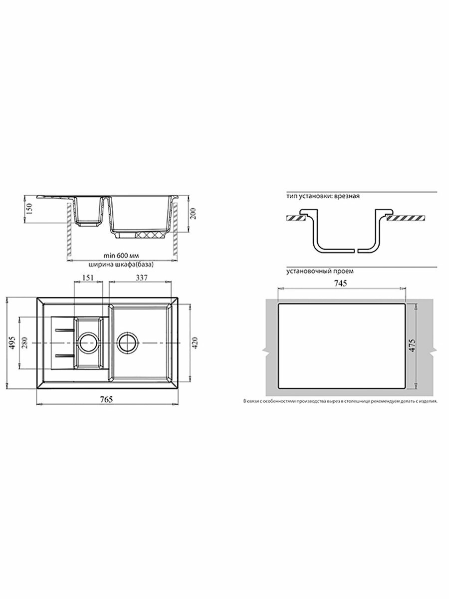 Мойка GRANFEST GF-Q775KL 1_5чаши 770*500мм черный