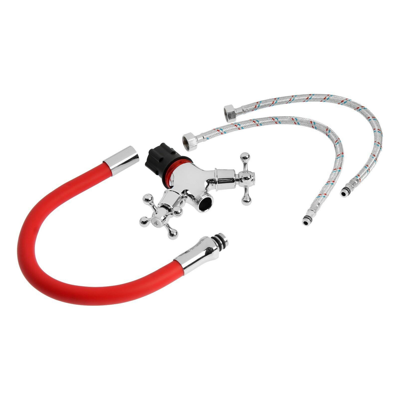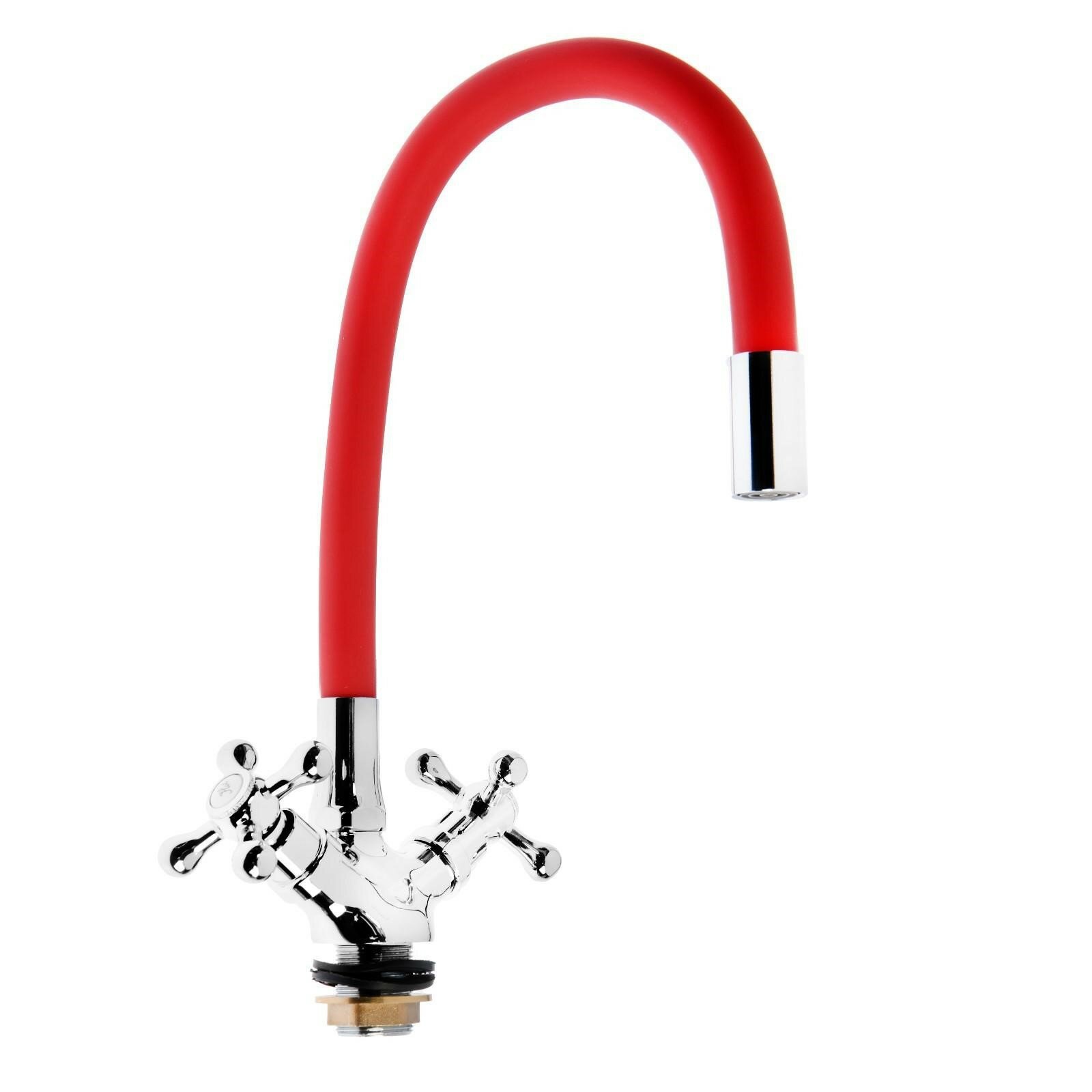 Купить Смеситель для кухни ZEIN Z2106, двухвентильный, силиконовый излив, силумин, красный/хром