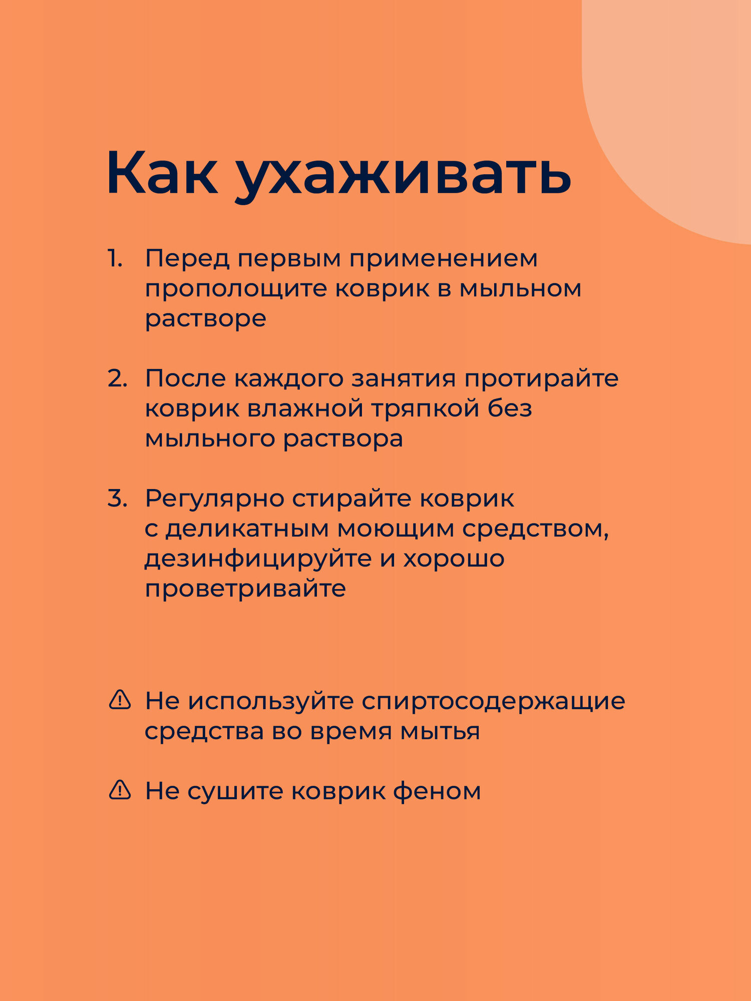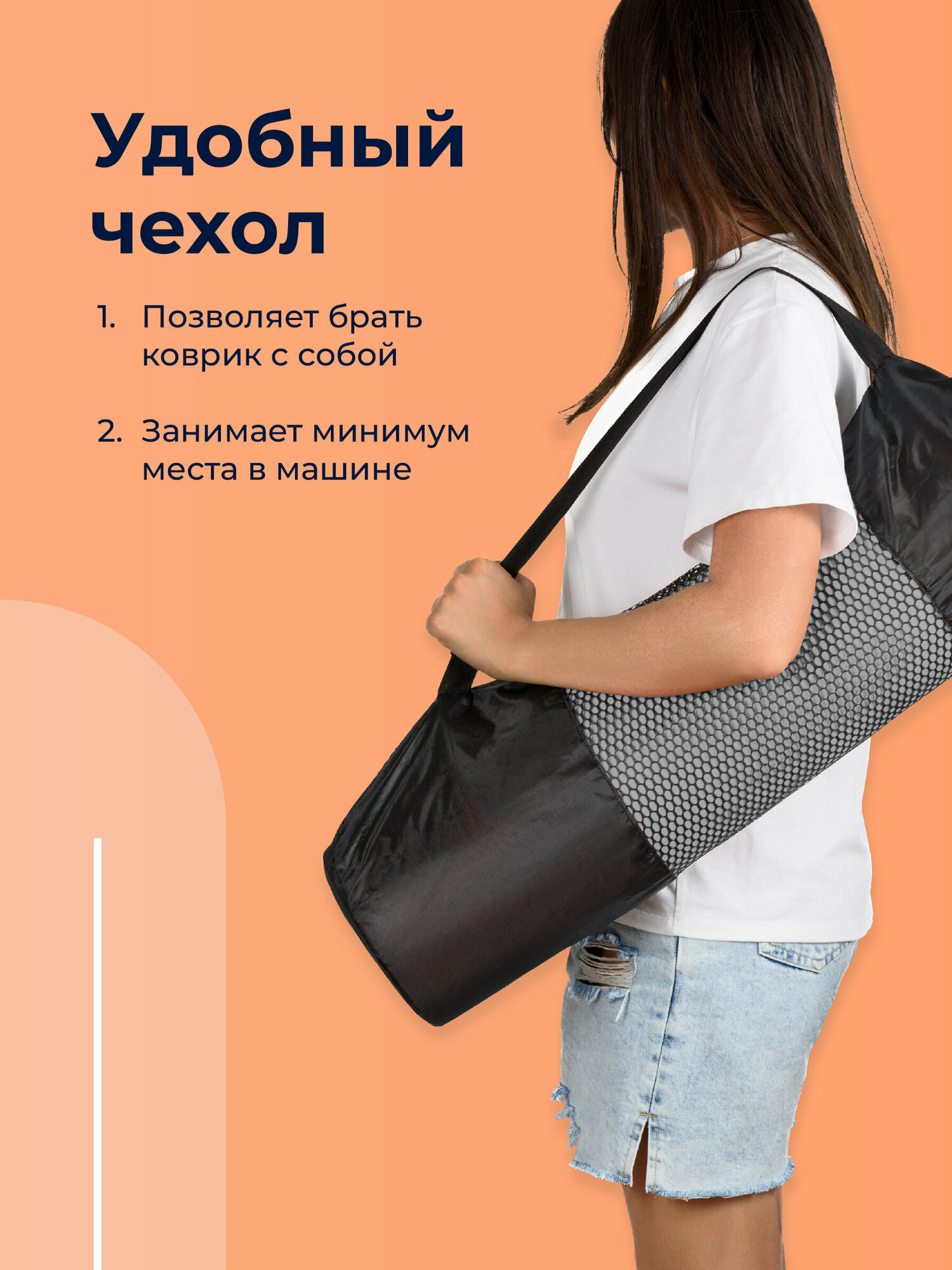 | Плюсы: | Руки, ноги не скользят на нём. Мягкий, приятный на ощупь. Возвращает свою форму. Метки на ковре действительно удобны. В комплекте чехол и лямки для переноски. |