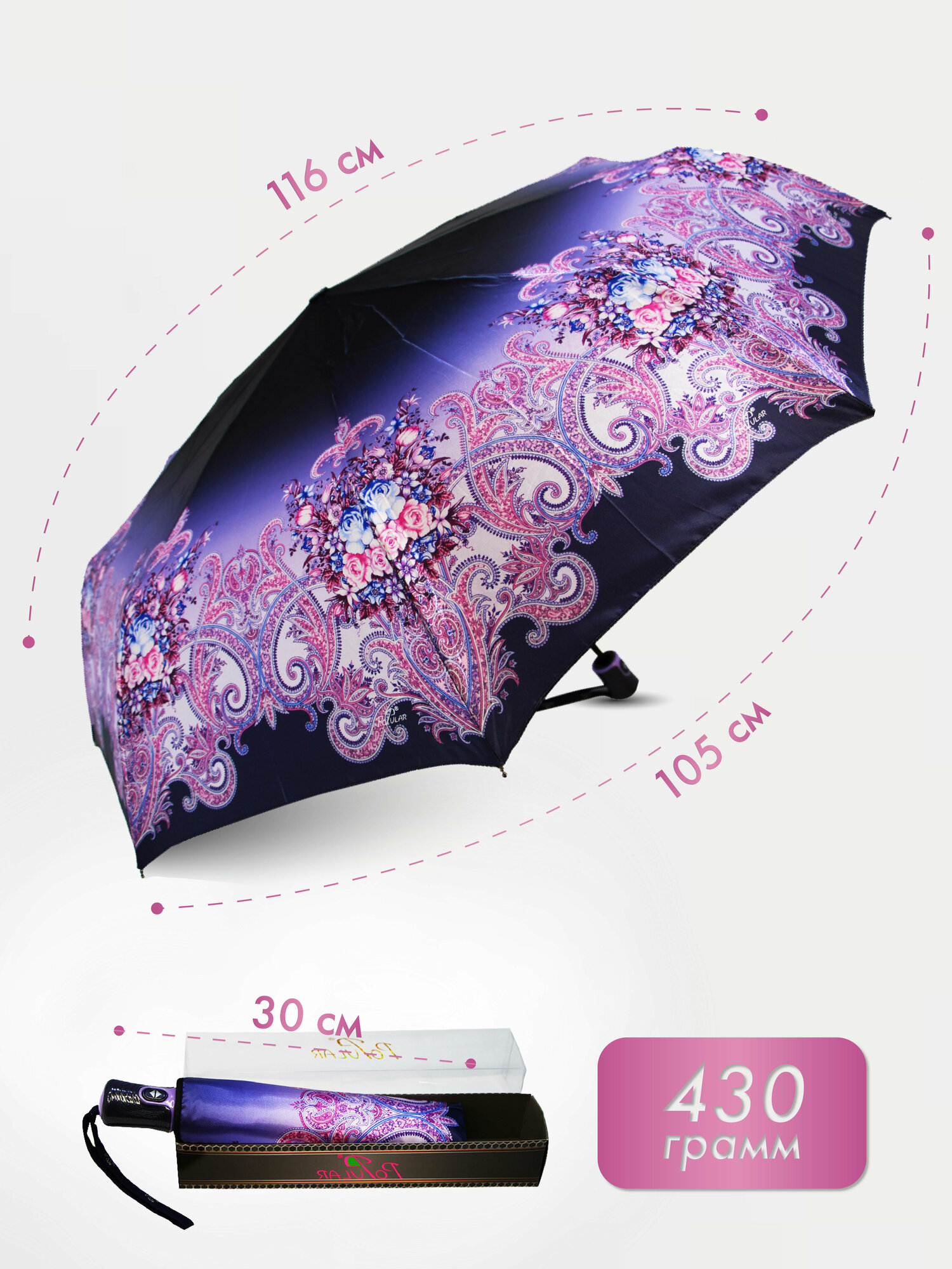 | Дополнительная информация | Комплектация: зонт 1шт, чехол 1шт, подарочная коробка 1шт. |