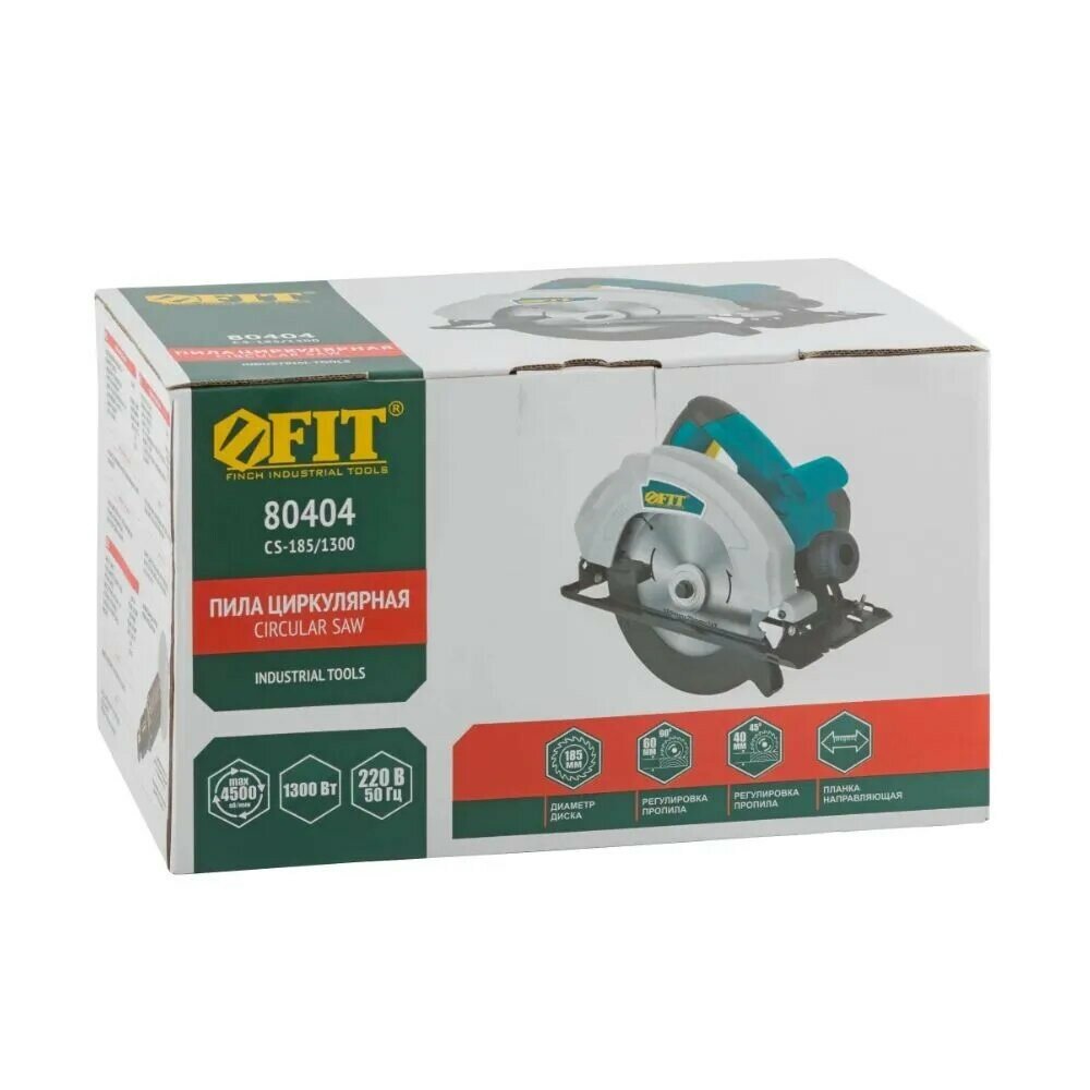 Пила дисковая 1300 Вт; 4500 об/мин; 185/20 мм; жел. опора; рез. накл.; блок шпинд.; коробка, FIT 80404 (1 шт.)