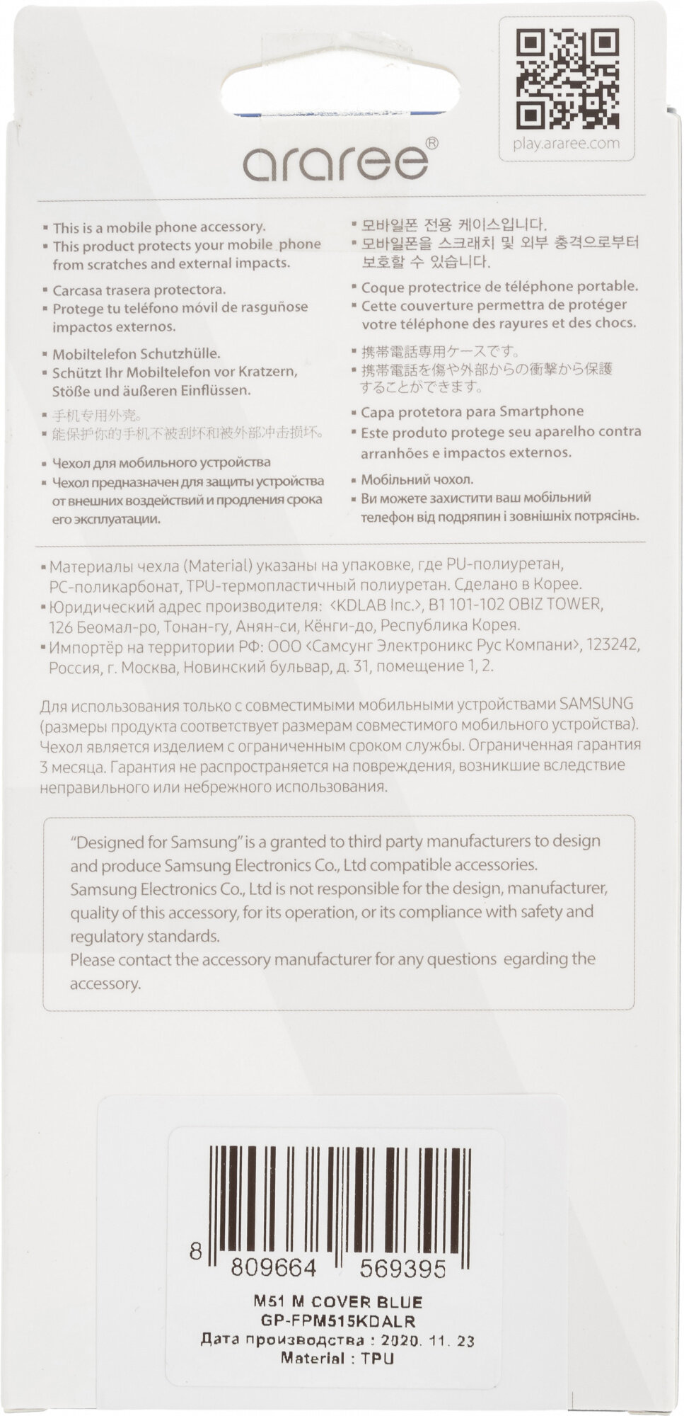 Купить Чехол (клип-кейс) Samsung araree M cover, для Samsung Galaxy M51, противоударный, синий [gp-fpm515kdalr]
