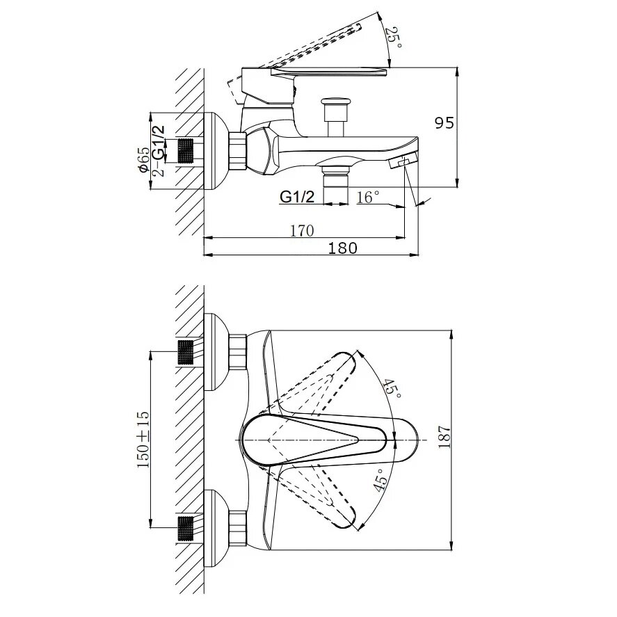 | Комплектация | смеситель, душевой шланг, душевая лейка, держатель лейки, комплект эксцентриков |
