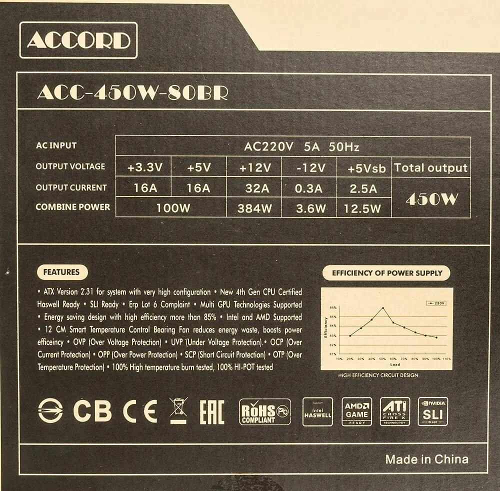 Ниже Вы можете прочитать отзывы на Блок питания Accord ATX 450W ACC-450W-80BR 80+ bronze (24+4+4pin) 120mm fan 6xSATA RTL, ознакомится с подробными характеристиками, посмотреть интересные обзоры и фотографии на Блок питания Accord ATX 450W ACC-450W-80BR 80+ bronze (24+4+4pin) 120mm fan 6xSATA RTL.
