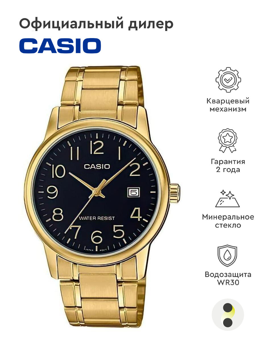 Наручные часы CASIO Collection Men MTP-V002G-1B, черный, золотой