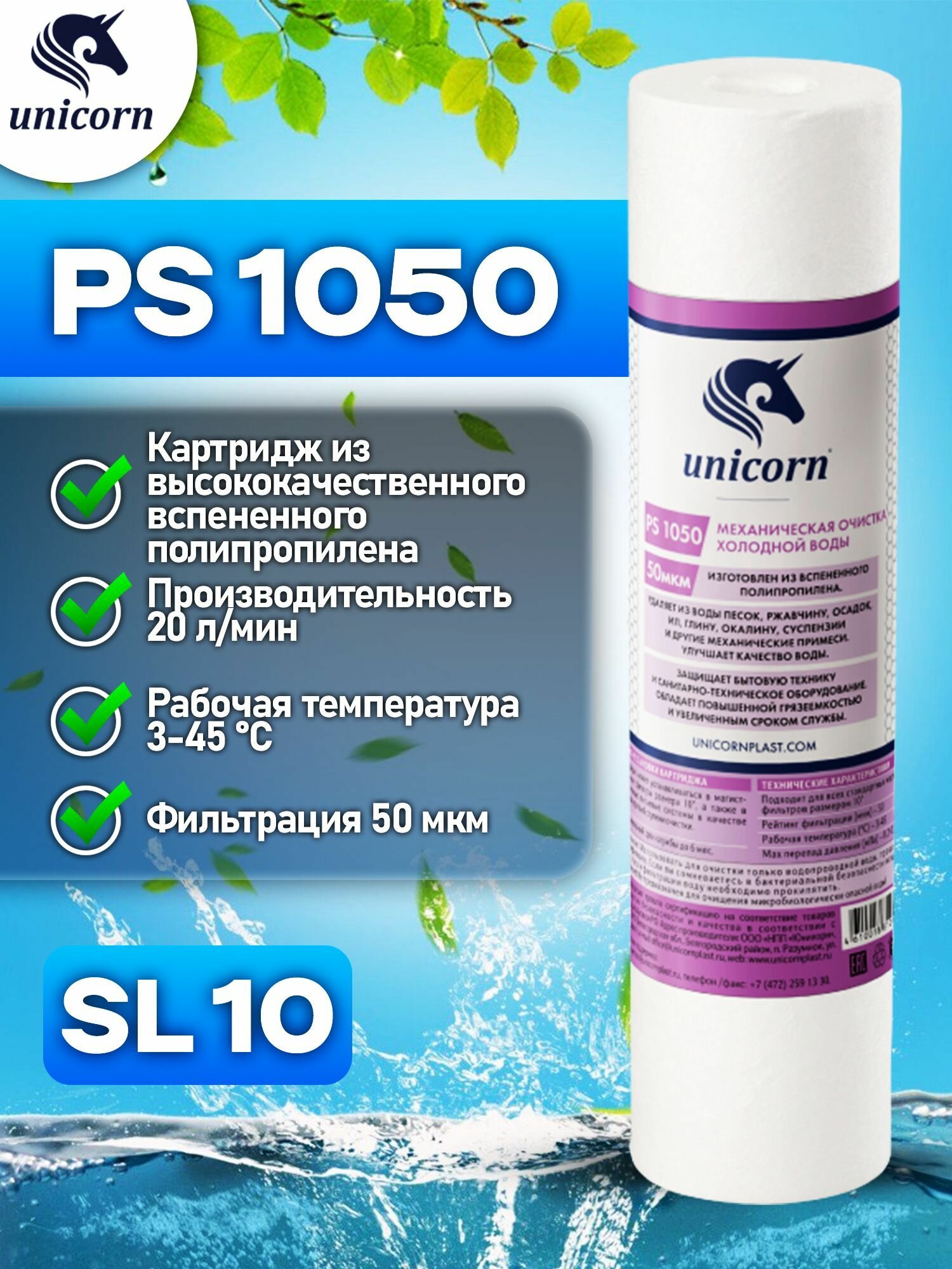 Механический картридж Unicorn на холодную воду, 10'', 50 мкм, PS 1050 S 541194