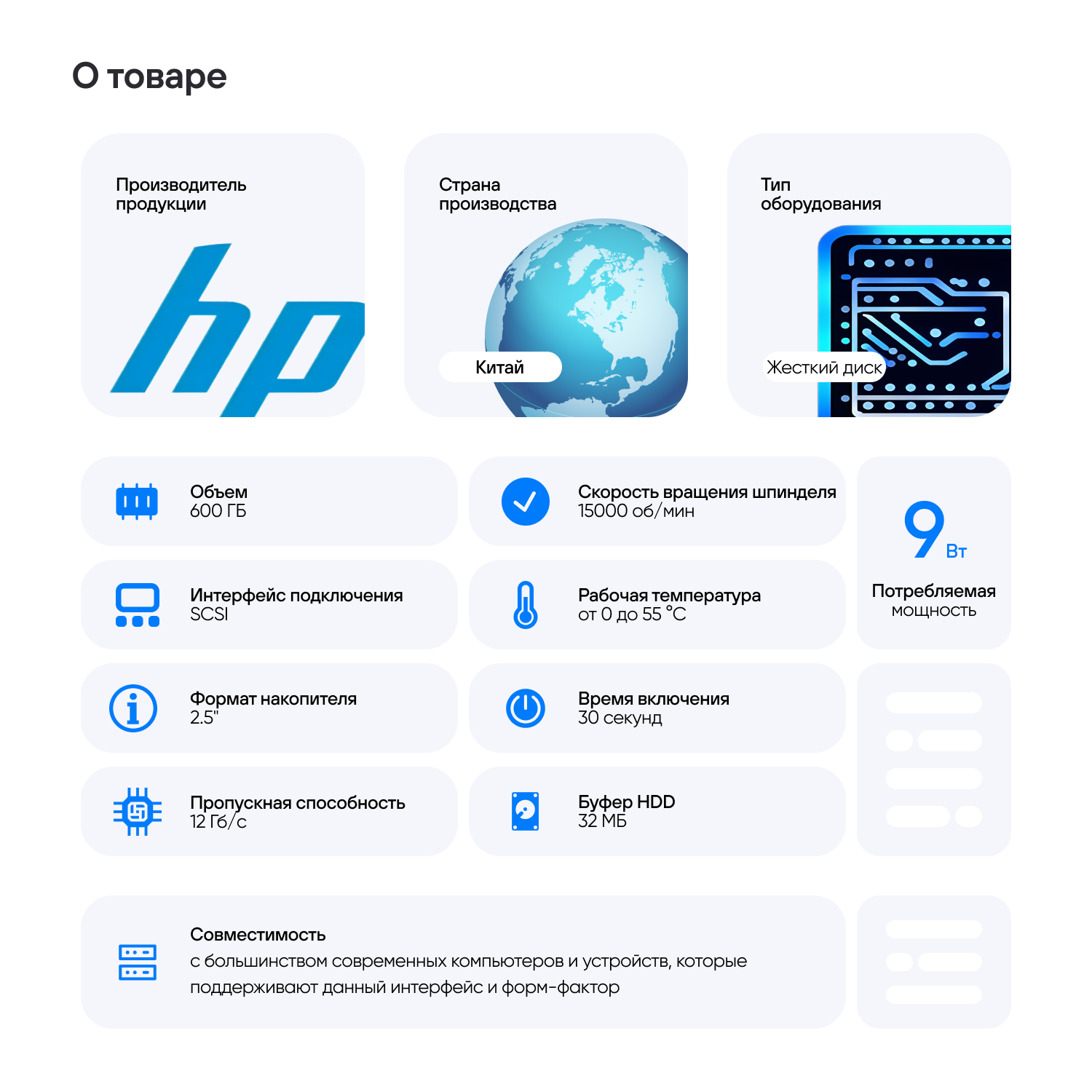 Жесткий диск HPE 600GB 2,5''(SFF) SAS 15K 12G Hot Plug w Smart Drive SC DS Enterprise HDD (for HP Proliant Gen9 servers)