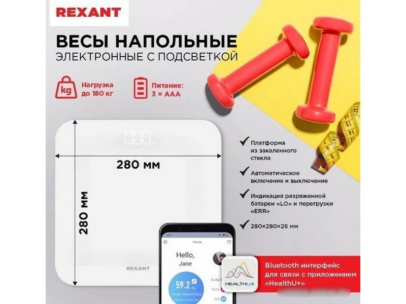 Умные напольные электронные весы REXANT с Bluetooth на батарейках