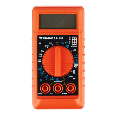Мультиметр мини цифровой Ермак, DT-182, цвет оранжевый, с амперметром, 1 шт