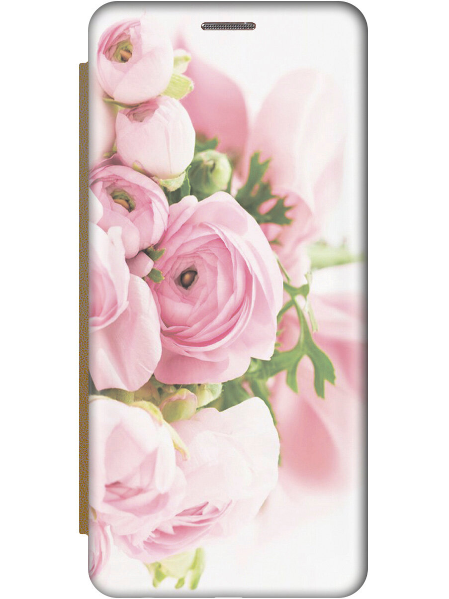 Чехол-книжка на Samsung Galaxy S10, Самсунг С10 с 3D принтом "Розовый букет" золотой