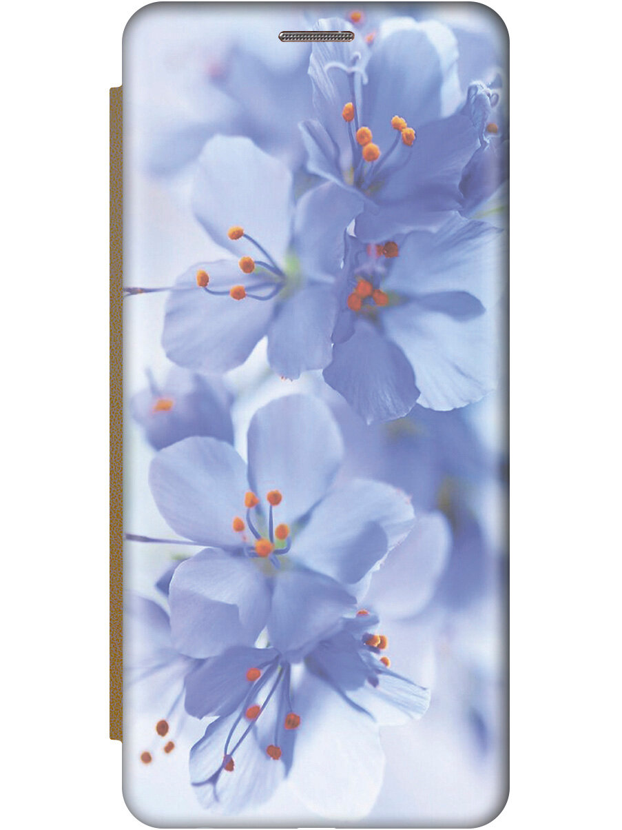 СохранитьЧехол-книжка на Samsung Galaxy S10, Самсунг С10 с 3D принтом "Лазурные орхидеи" золотой интересное: