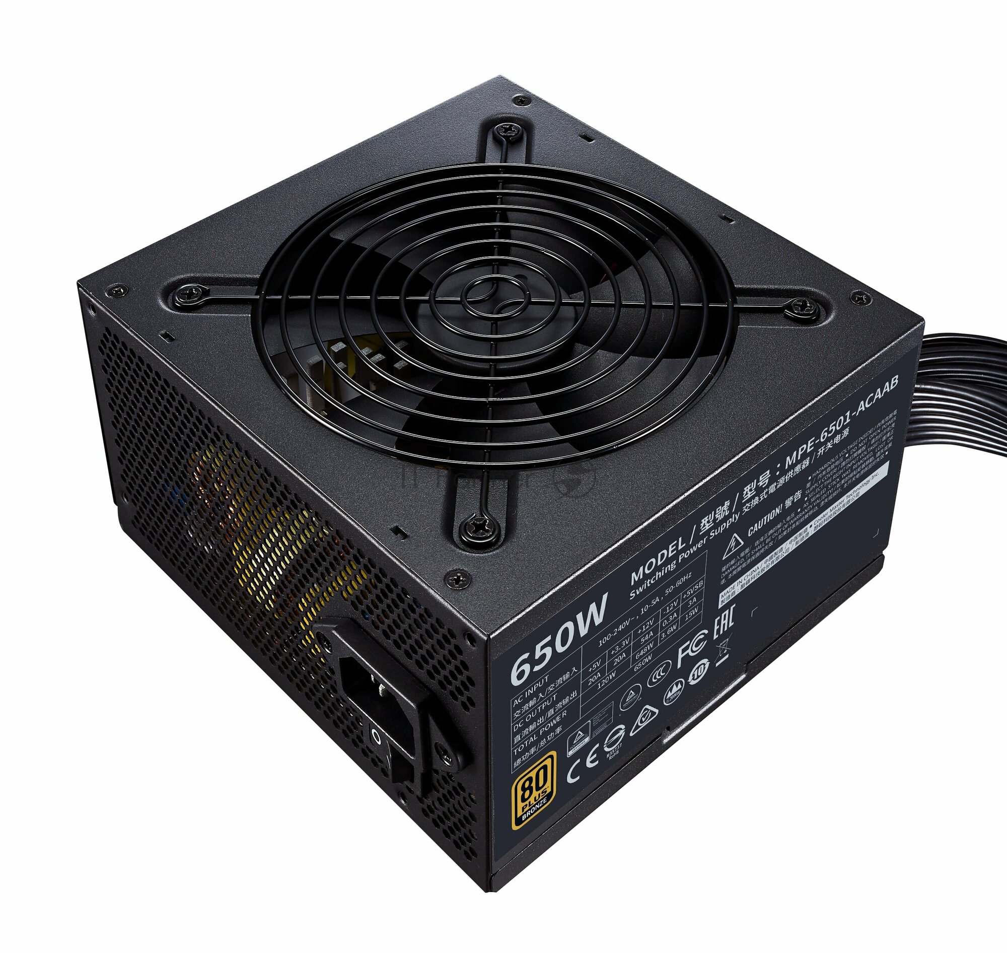Блок питания COOLER MASTER ATX 650W Сертификат 80 PLUS BRONZE PFC Активный MPE-6501-ACAAB-EU