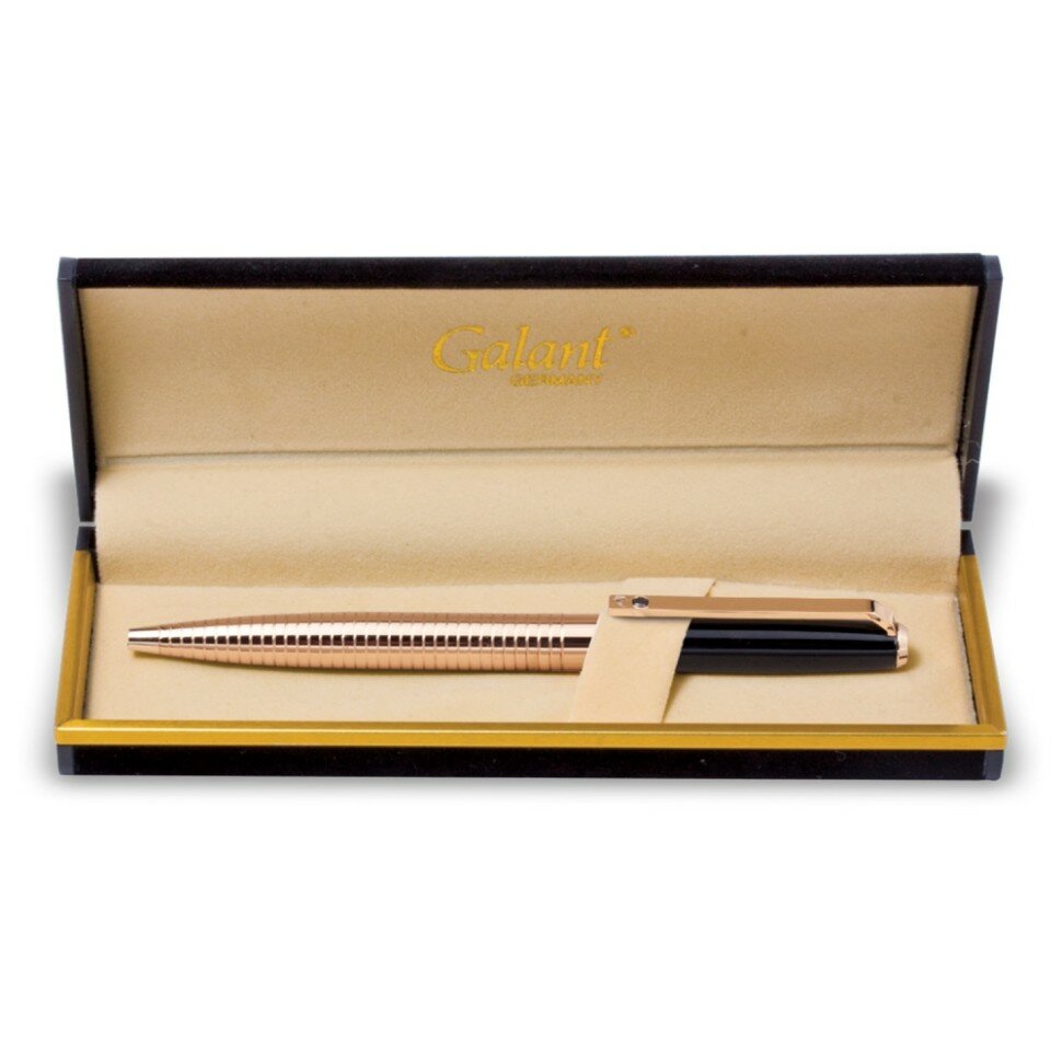 Ручка шариковая Galant Black Melbourne, корпус золотистый с черным, золотистые детали, пишущий узел 0,7 мм, синяя