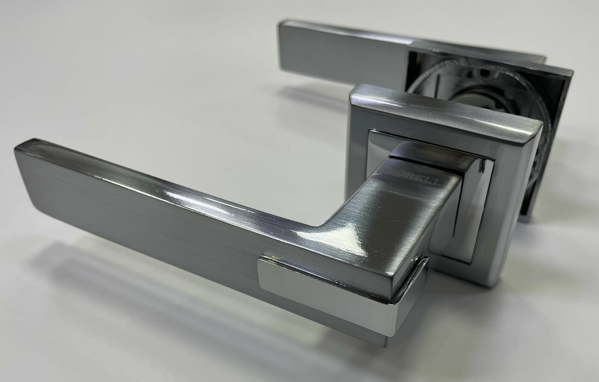 Дверная ручка на квадратной розетке MORELLI MH-43 "Jura" матовый хром + хром