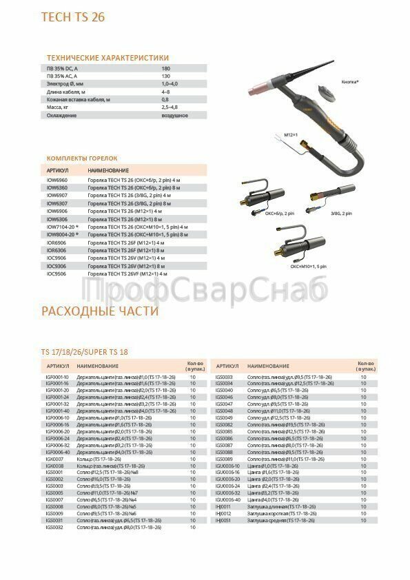 Горелка сварочная TIG TECH TS 26 (3/8G, 2 Pin), сварог интересное:
