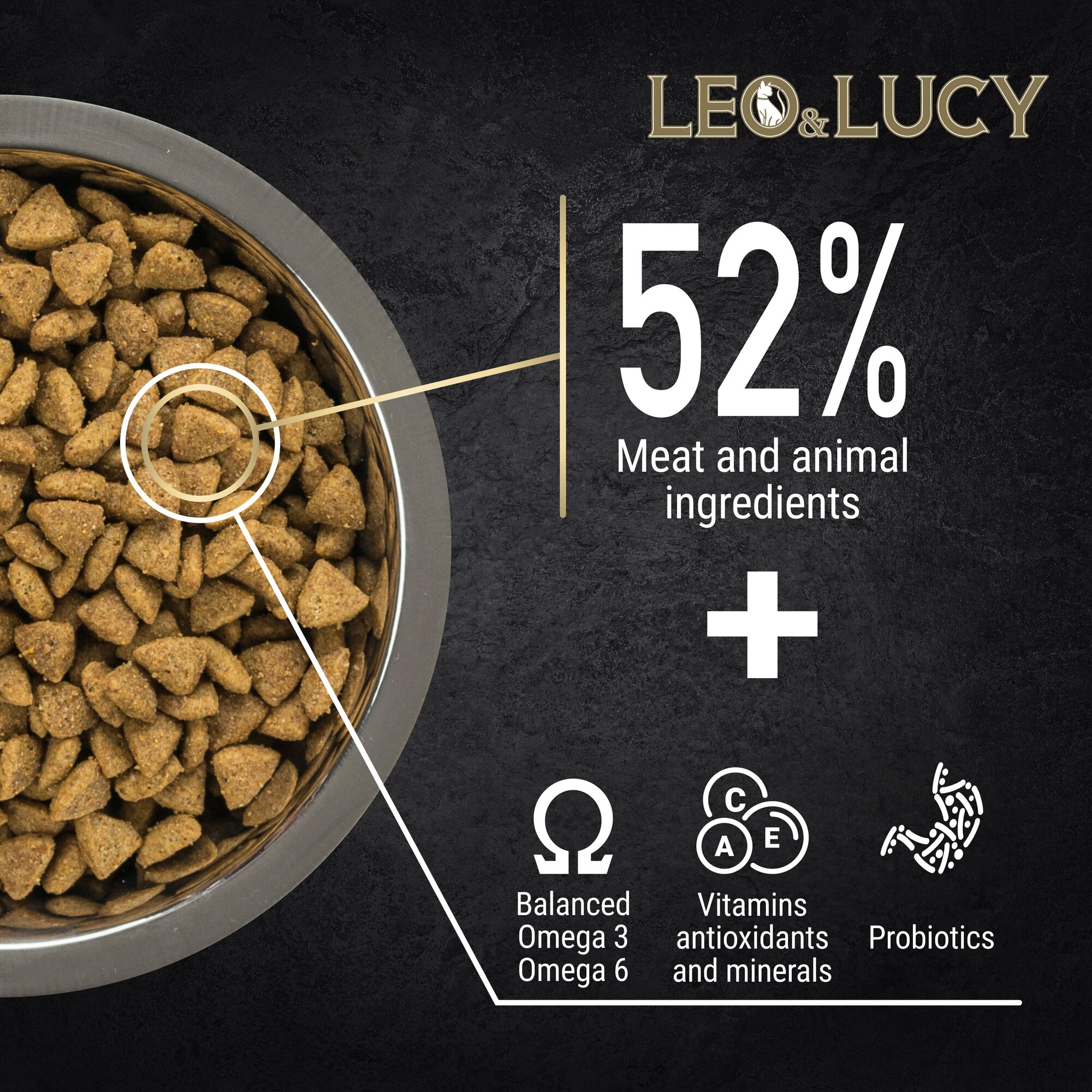 LEO&LUCY сухой холистик корм полнорационный для взрослых кошек мясное ассорти и биодобавками, подходит для стерилизованных, 1,5 кг
