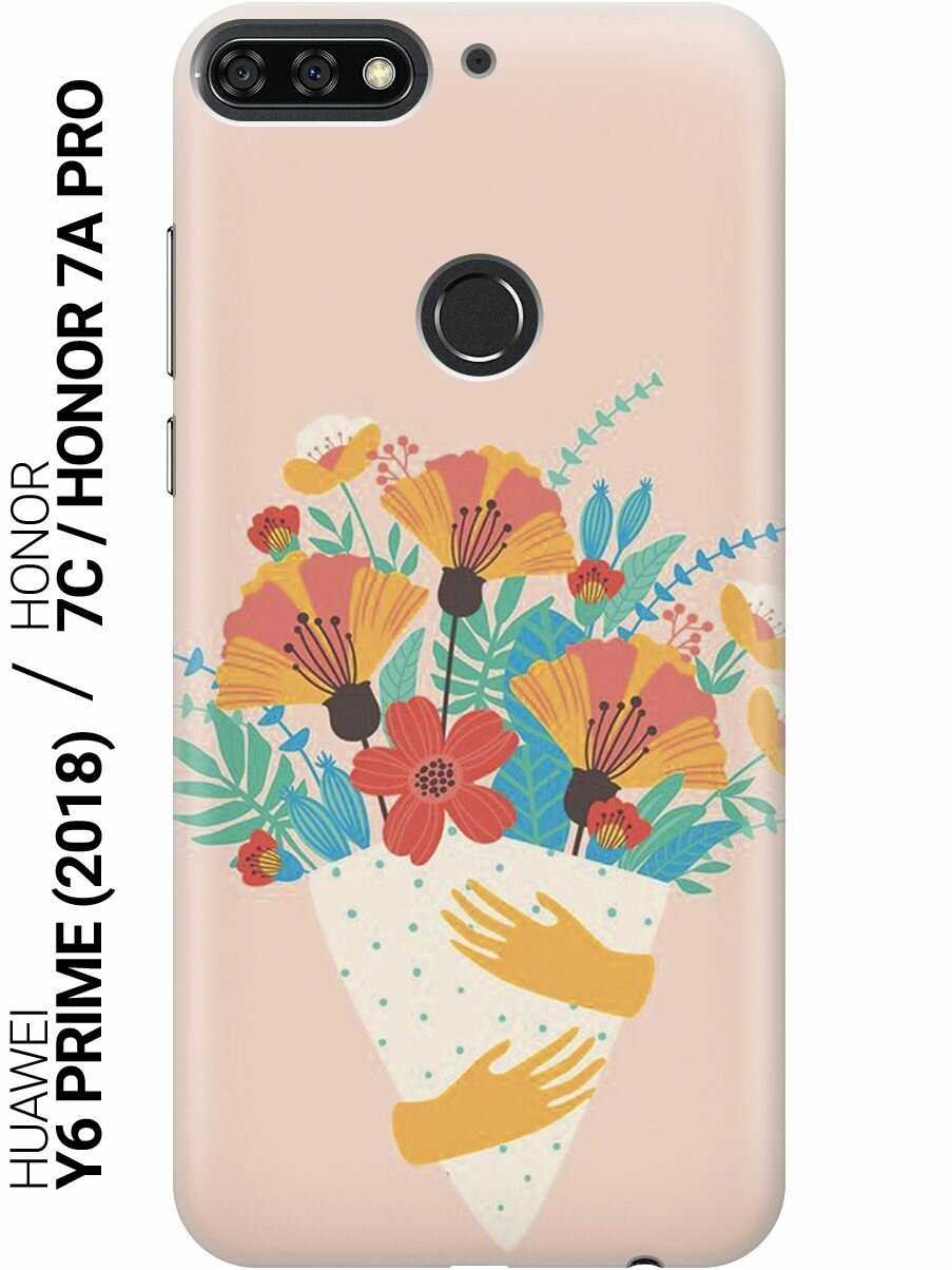 Купить Силиконовый чехол на Honor 7C, 7A Pro, Huawei Y6 Prime (2018), Хуавей У6 Прайм 2018, Хонор 7А Про, 7С с принтом "Букет на розовом"