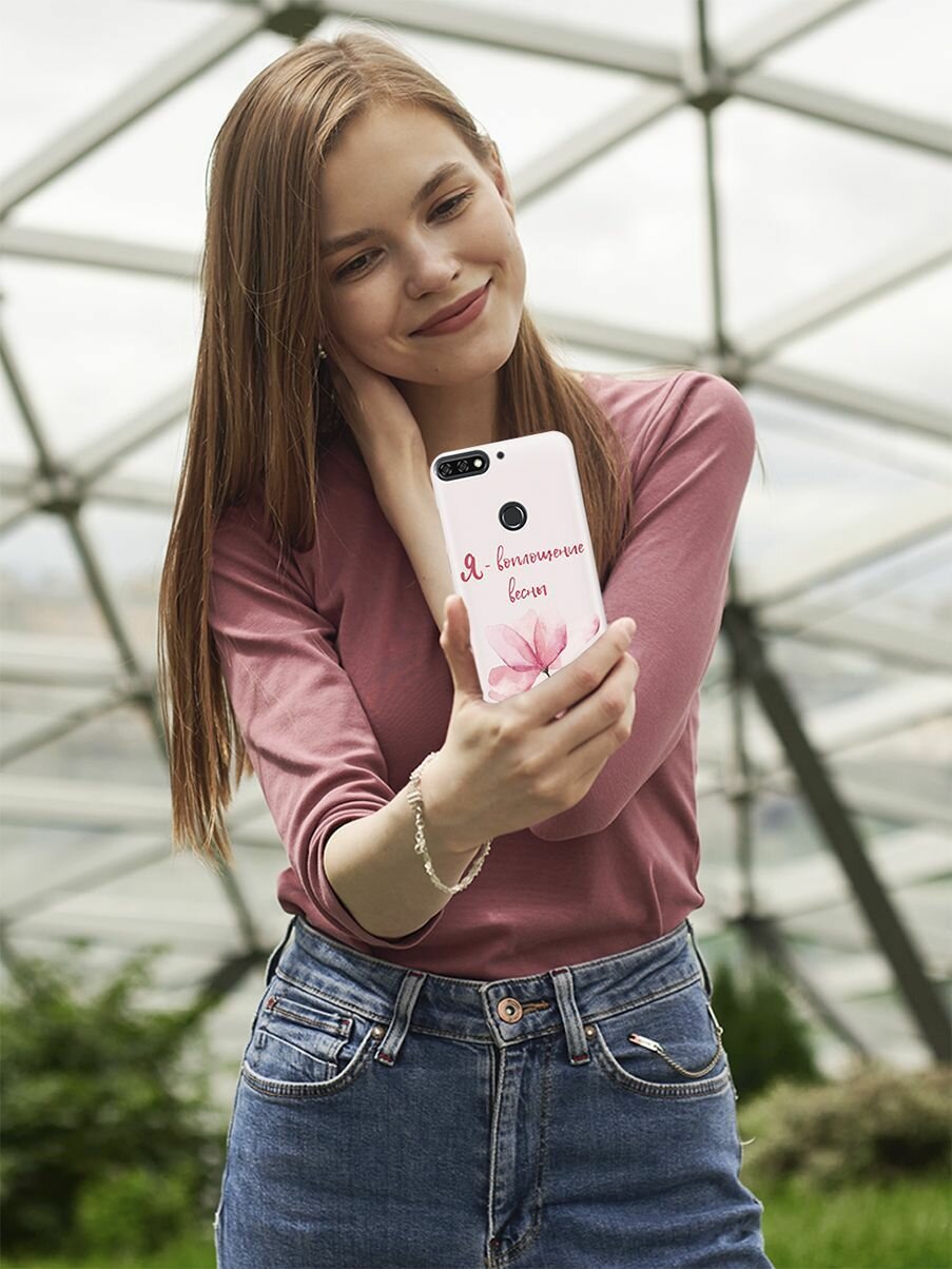 СохранитьСиликоновый чехол на Honor 7C, 7A Pro, Huawei Y6 Prime (2018), Хуавей У6 Прайм 2018, Хонор 7А Про, 7С с принтом "Я - воплощение весны" интересное: