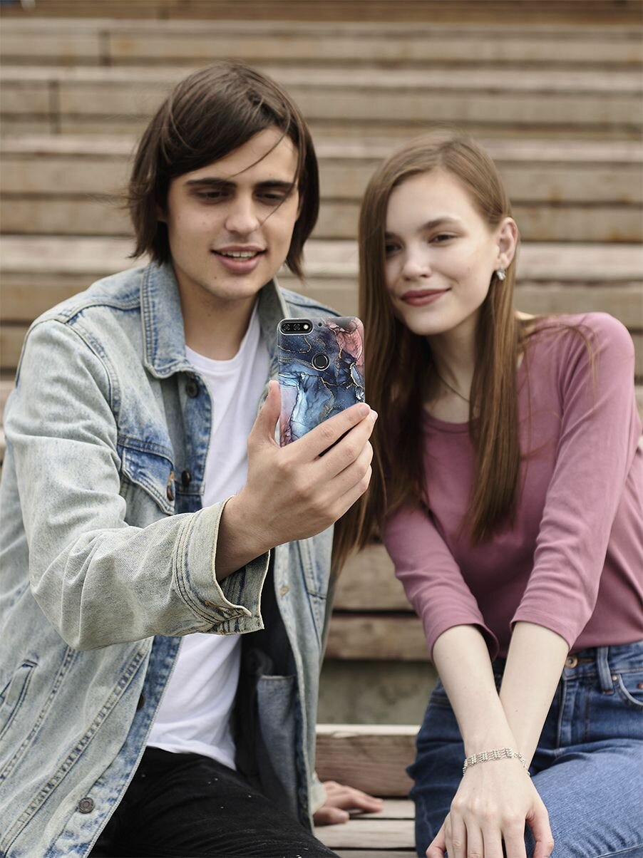 СохранитьСиликоновый чехол на Honor 7C, 7A Pro, Huawei Y6 Prime (2018), Хуавей У6 Прайм 2018, Хонор 7А Про, 7С с принтом "Сине-розовый мрамор" интересное: