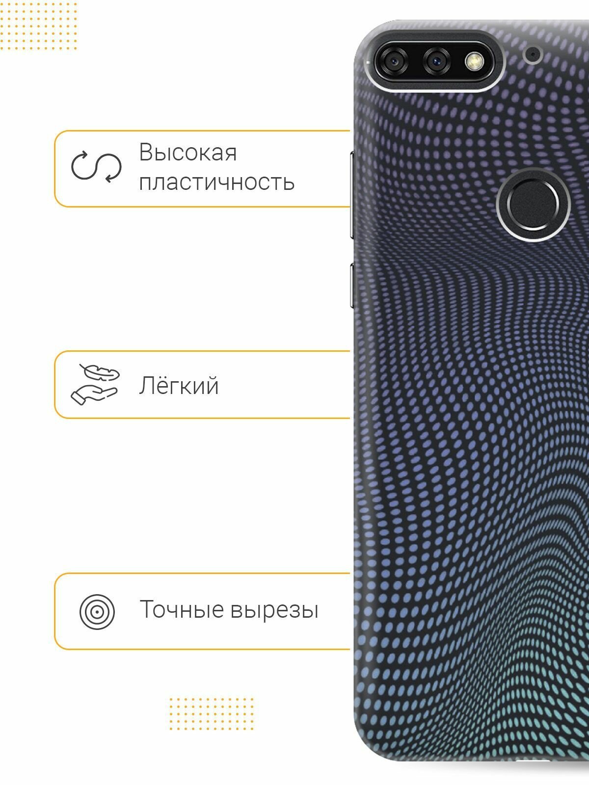 СохранитьСиликоновый чехол на Honor 7C, 7A Pro, Huawei Y6 Prime (2018), Хуавей У6 Прайм 2018, Хонор 7А Про, 7С с принтом "Изгибы из точек" интересное: