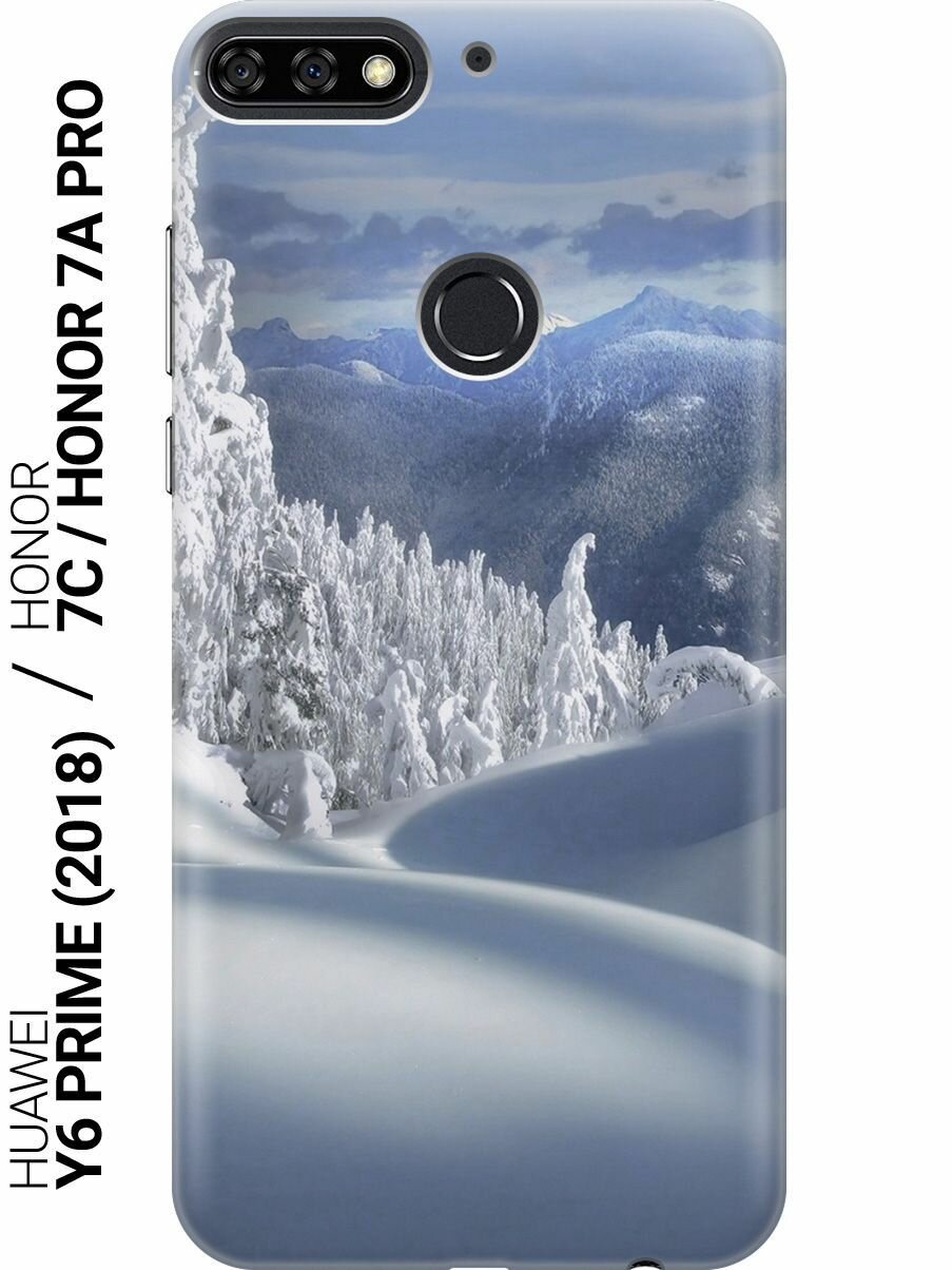 Купить Силиконовый чехол на Honor 7C, 7A Pro, Huawei Y6 Prime (2018), Хуавей У6 Прайм 2018, Хонор 7А Про, 7С с принтом "Заснеженный лес и горы"