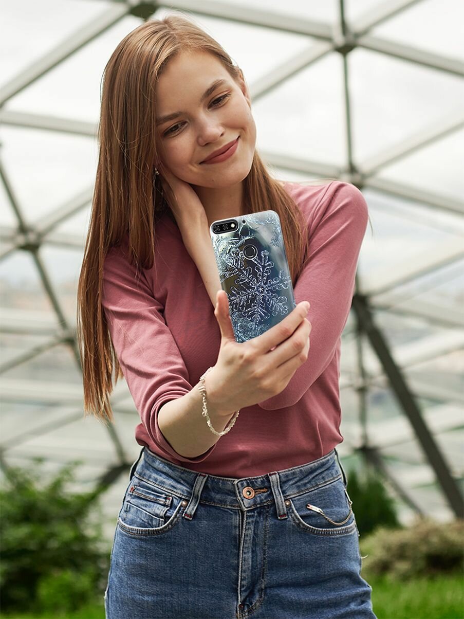 СохранитьСиликоновый чехол на Huawei Y6 Prime (2018), Honor 7C, Honor 7A Pro, Хуавей У6 Прайм 2018, Хонор 7А Про, Хонор 7С с принтом "Макро снежинка" интересное: