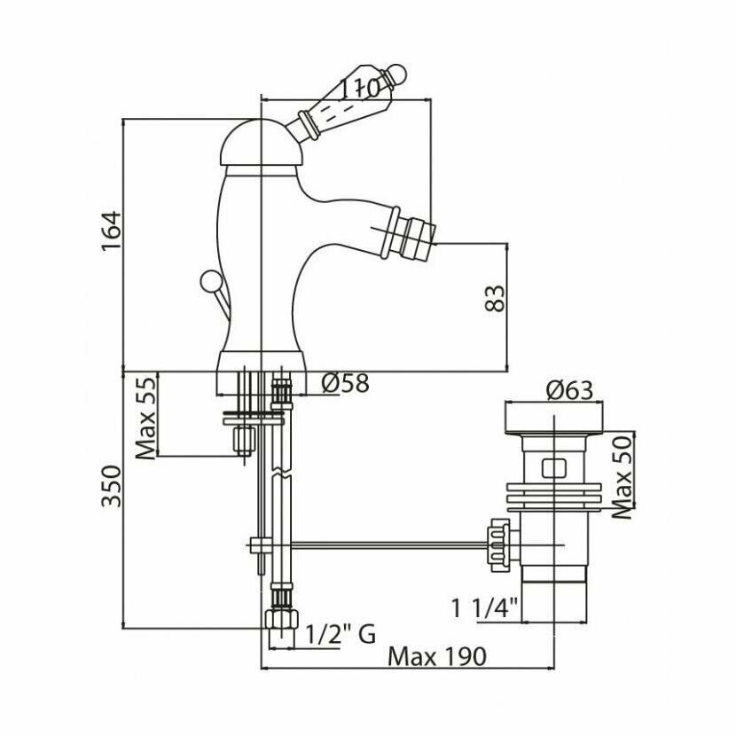Смеситель Cezares Vintage VINTAGE-BSM1-01-Sw для биде с донным клапаном