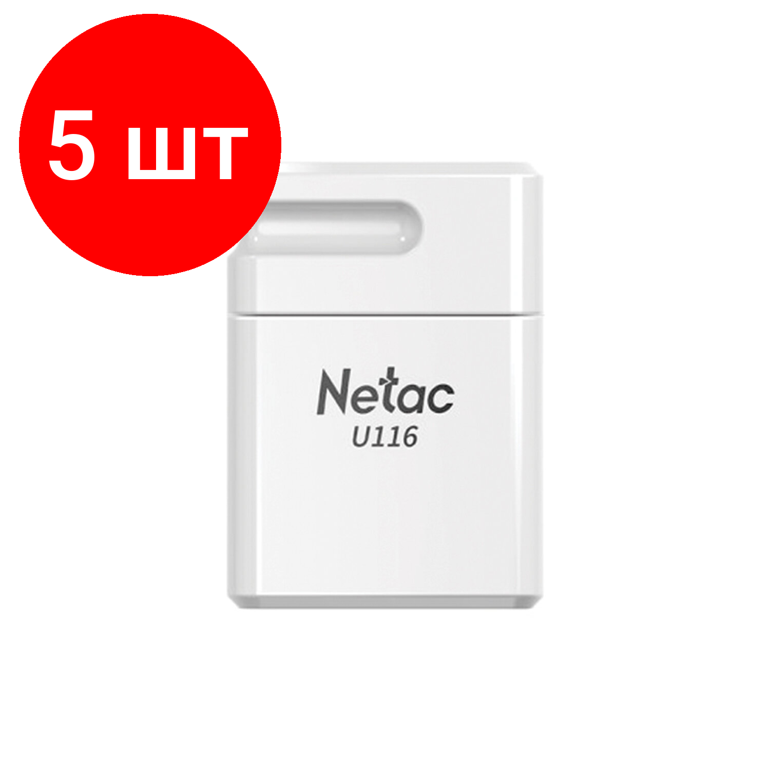 Флеш-диск 64 GB NETAC U116, комплект 5 шт., USB 2.0, белый, NT03U116N-064G-20WH