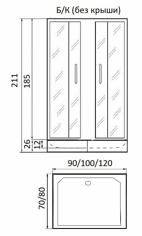 Душевое ограждение без поддона River MORAVA XL 90/70/24 МТ, 90x70x185