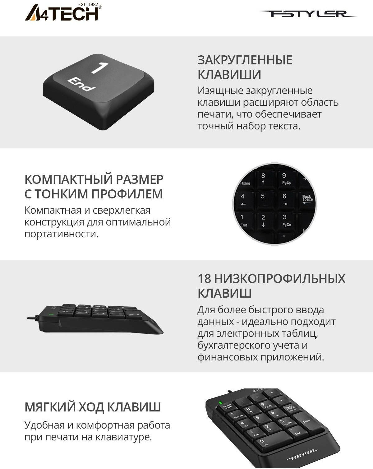 Купить Клавиатура A4Tech Fstyler FK13P числовой блок, черный USB slim для ноутбука (1359931)