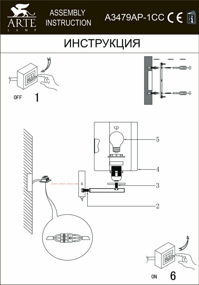 | Комплектация | бра Arte Lamp A3479AP-1CC |