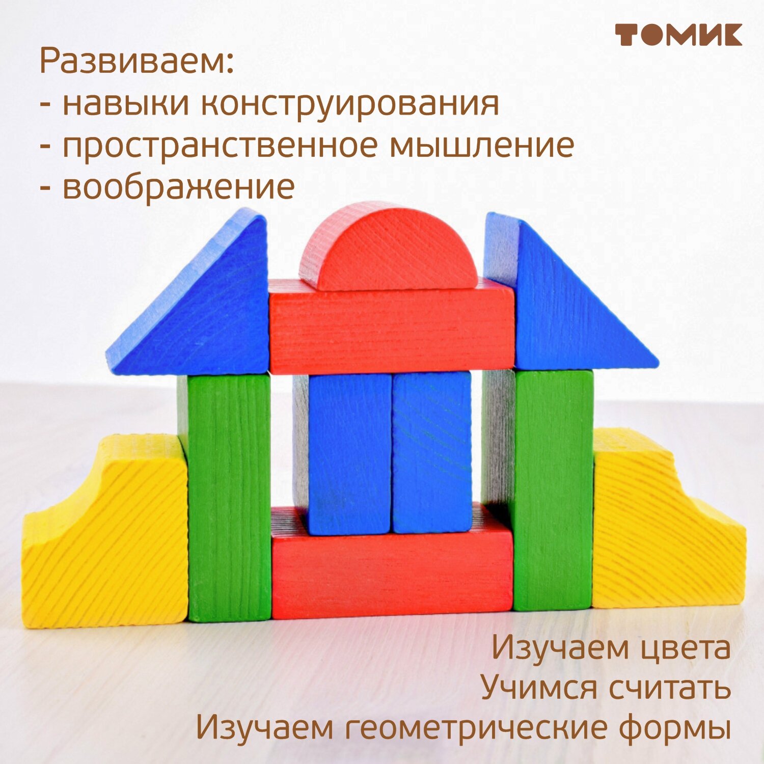 Конструктор деревянный Томик "Цветной" 14 дет. 6678-14