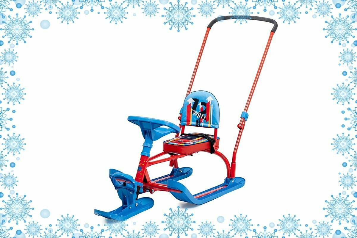 Снегокат детский Ника "Twiny 2+ Sportcar", спинка и ручка, цвет красно-голубой