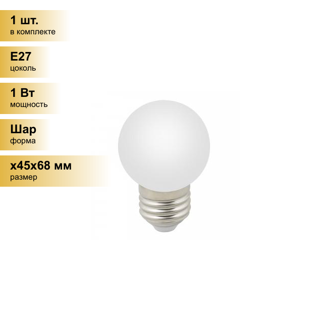 Лампы светодиодные Volpe LED-G45-1W/3000K/E27/CL/С, цена за 1 шт