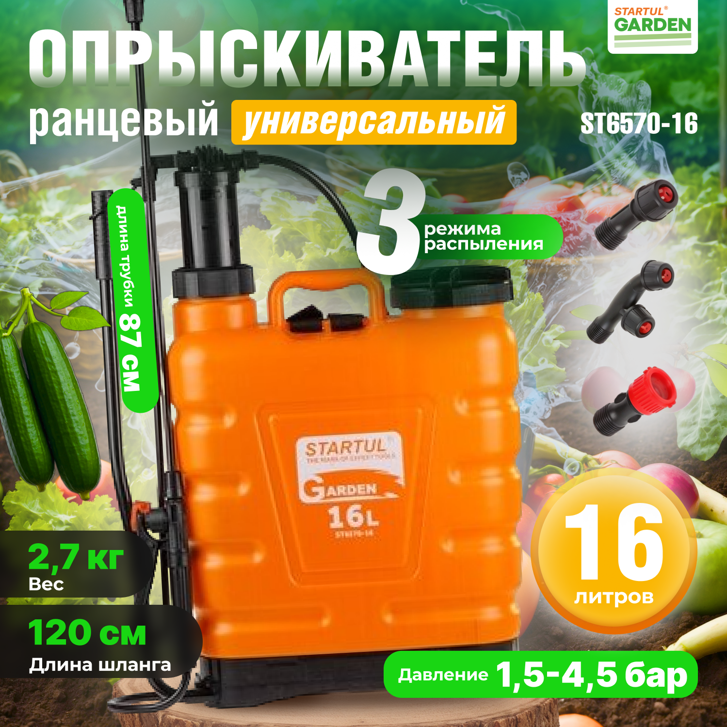 Опрыскиватель садовый ранцевый STARTUL GARDEN 16 л, ST6570-16 для растений, сада, огода