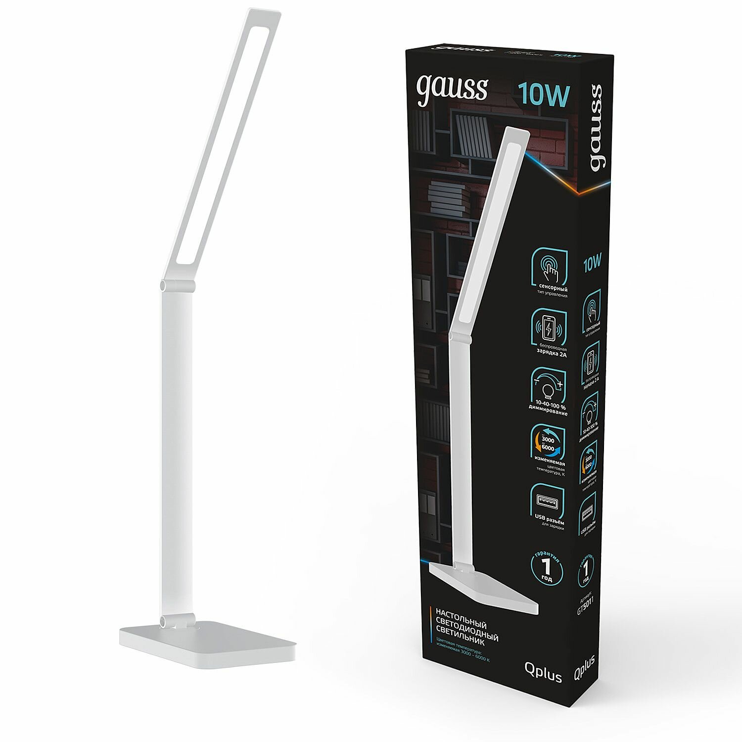 Gauss Светильник настольный Gauss Qplus GTL501 10W 600lm 3000-6000K 170-265V белый диммируемый Qi USB LED