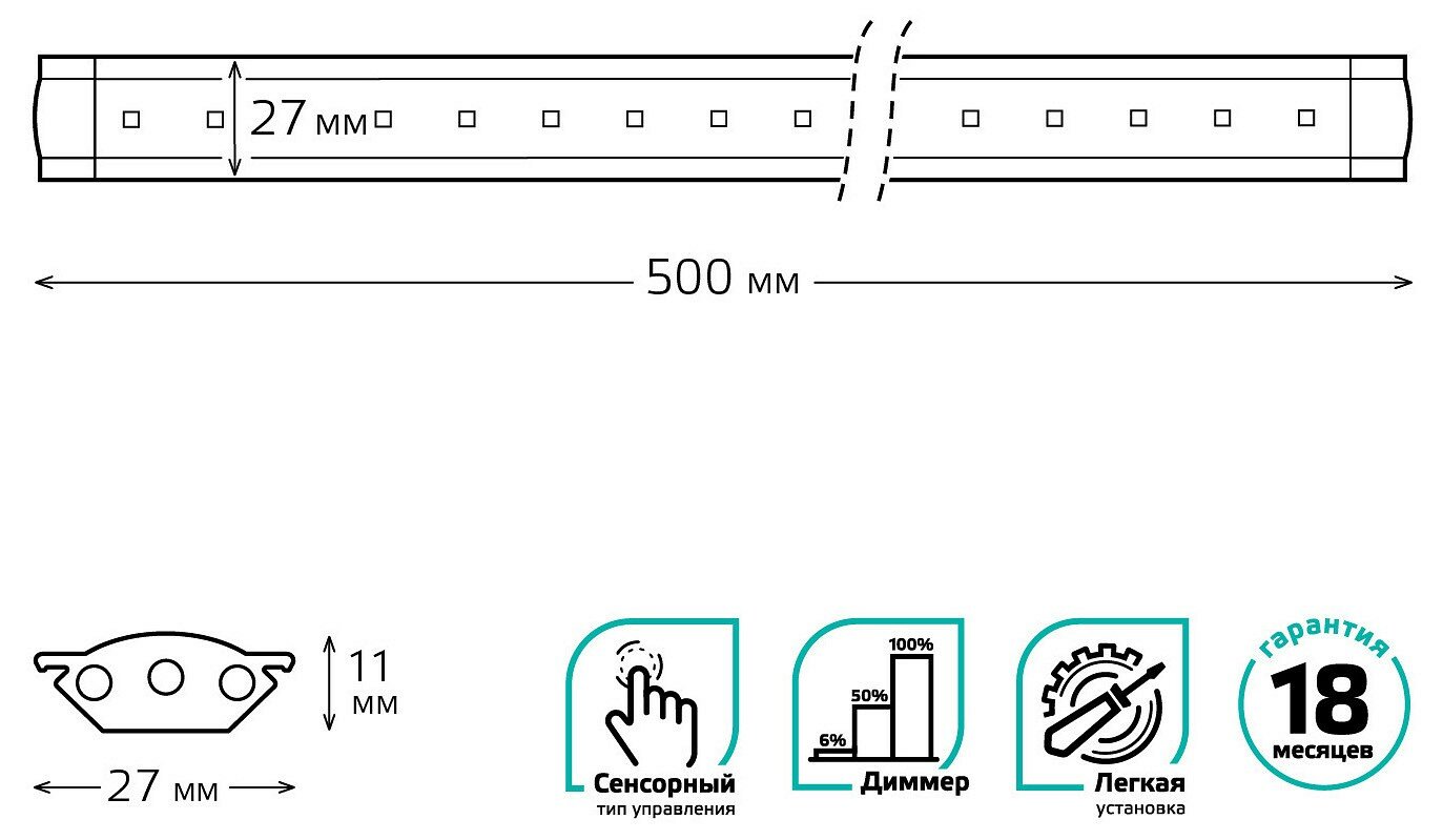 Купить Мебельный светильник Gauss модель G 6W 600lm 4000K 170-260V 500mm диммируемый TOUCH 1/10/40