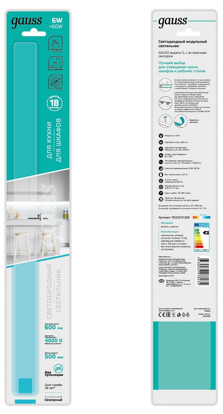 СохранитьМебельный светильник Gauss модель G 6W 600lm 4000K 170-260V 500mm диммируемый TOUCH 1/10/40 интересное: