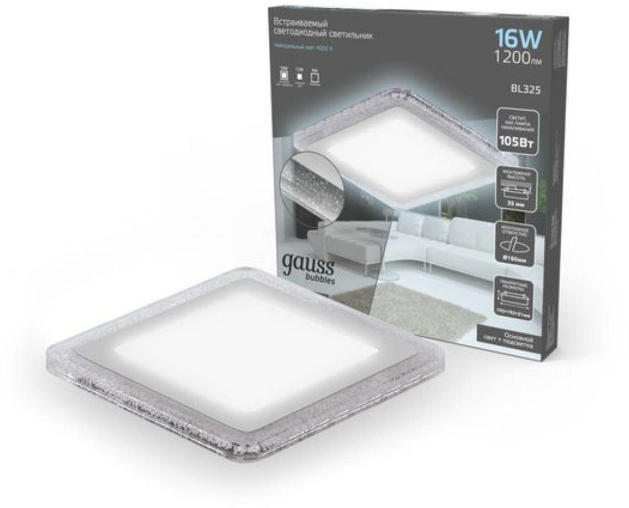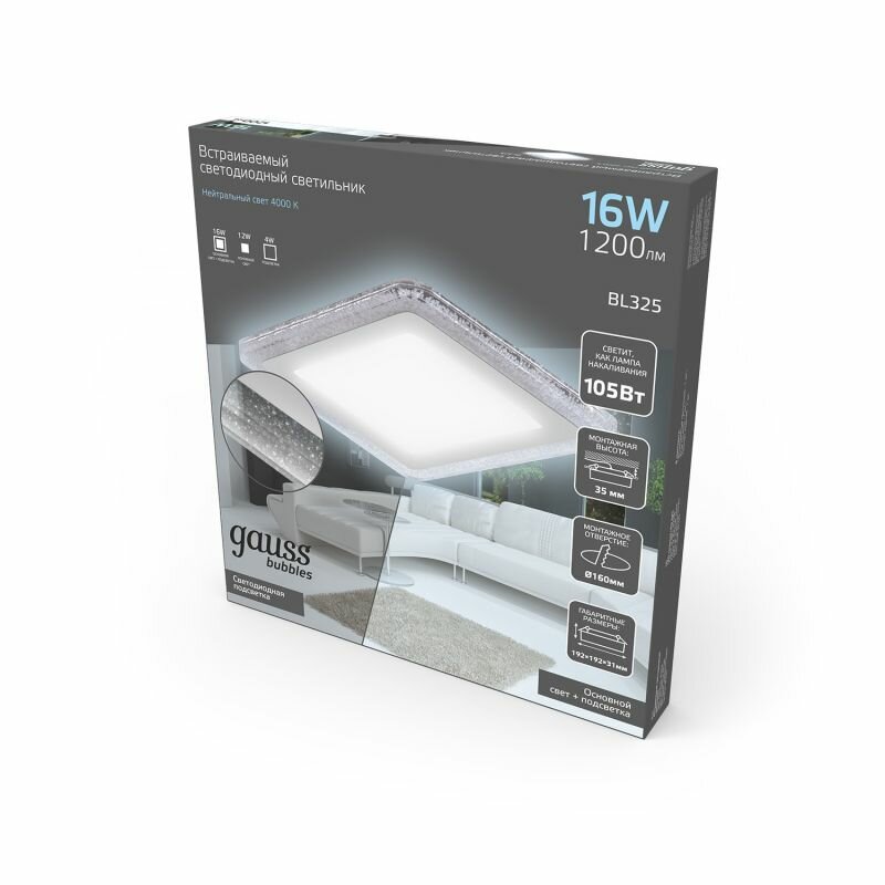 Встраиваемый светильник Gauss Backlight Bubbles BL325 12+4W, LED 4000K, 1200лм,192x192мм интересное: