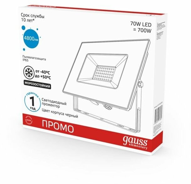 Прожектор LED 70W P65 6500К черный Gauss Elementary интересное: