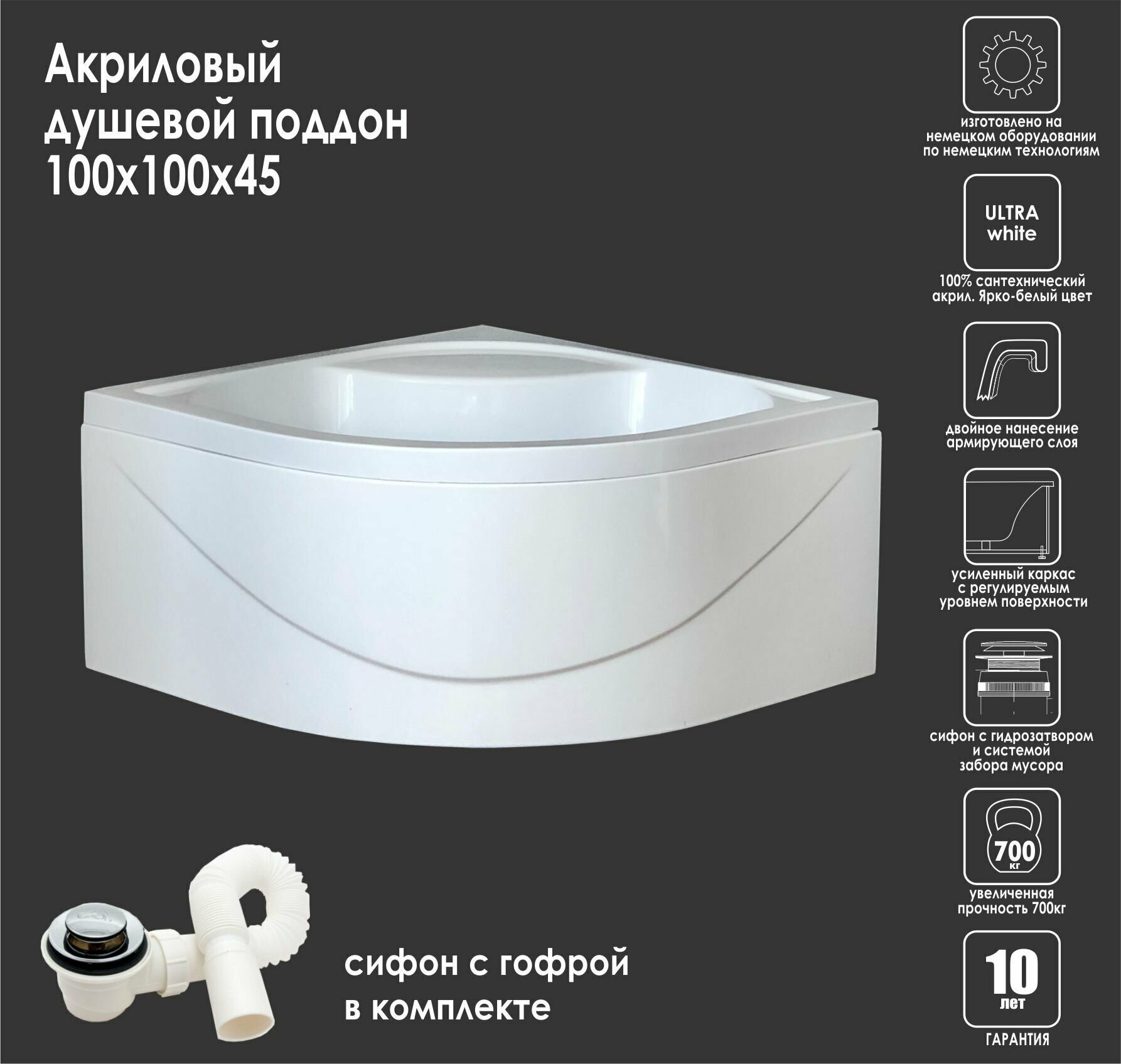 Купить Душевой поддон 100x100x45 Royal Bath четверть круга белый высокий