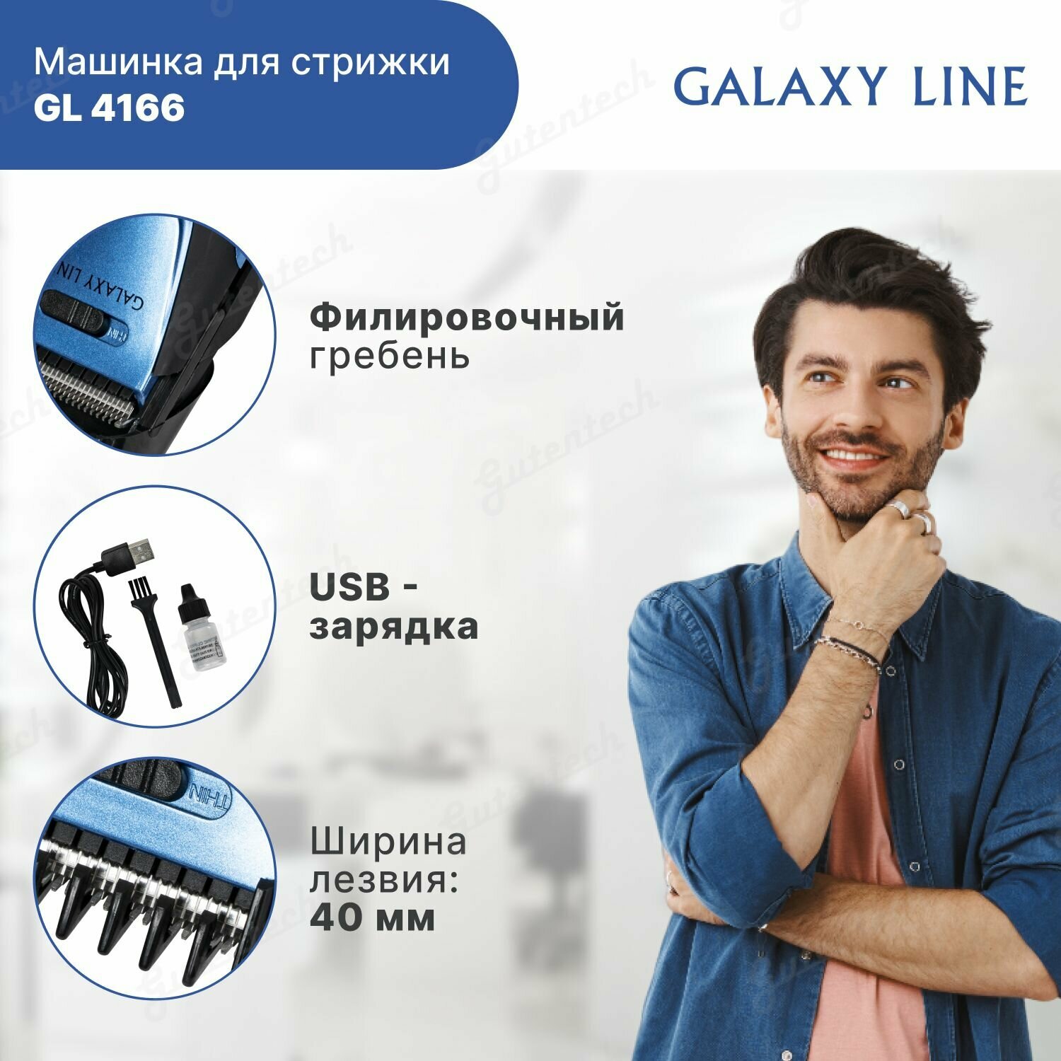 Машинка для стрижки Galaxy LINE GL 4166 / мощность 3 Вт / 24 положения насадки-расчески / голубой