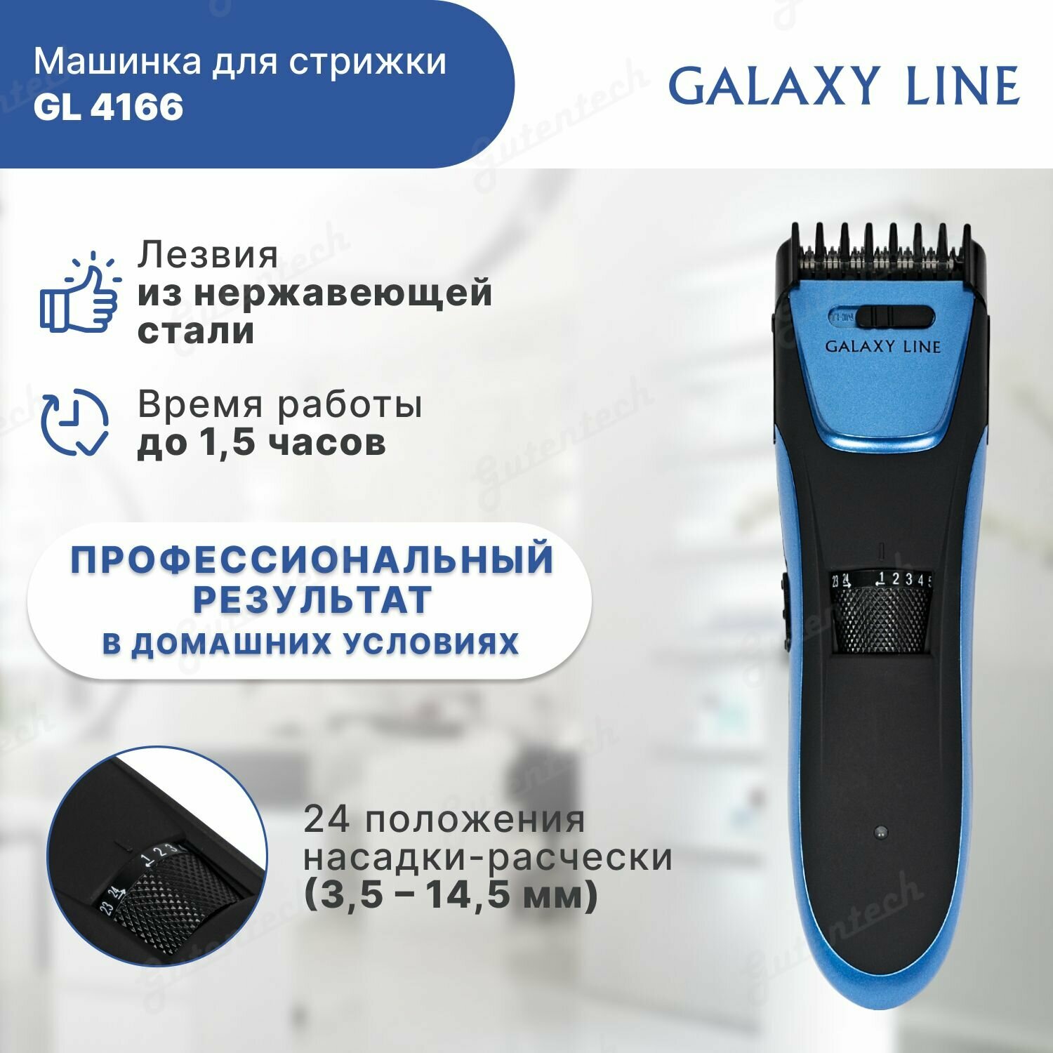 Купить Машинка для стрижки Galaxy LINE GL 4166, 3 Вт, 1-14.5 мм, нерж.сталь, 220 В, чёрно-голубая