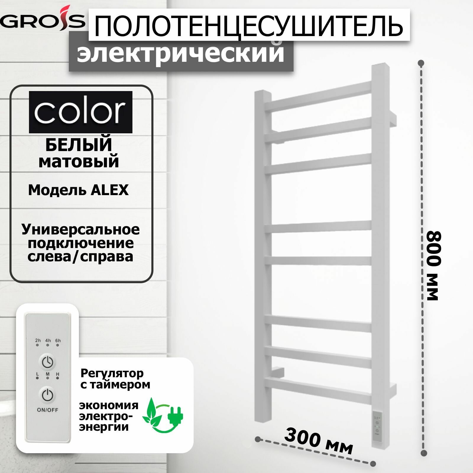 Полотенцесушитель электрический Alex GR-102 500х800 П8 white U универсальное подключение (левый/правый)