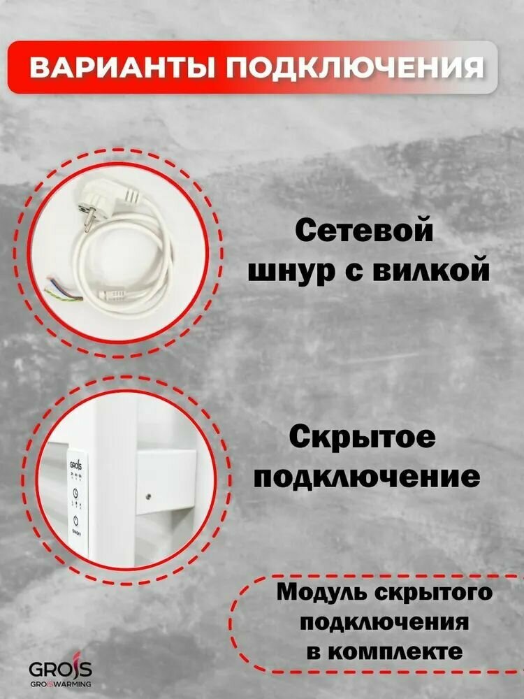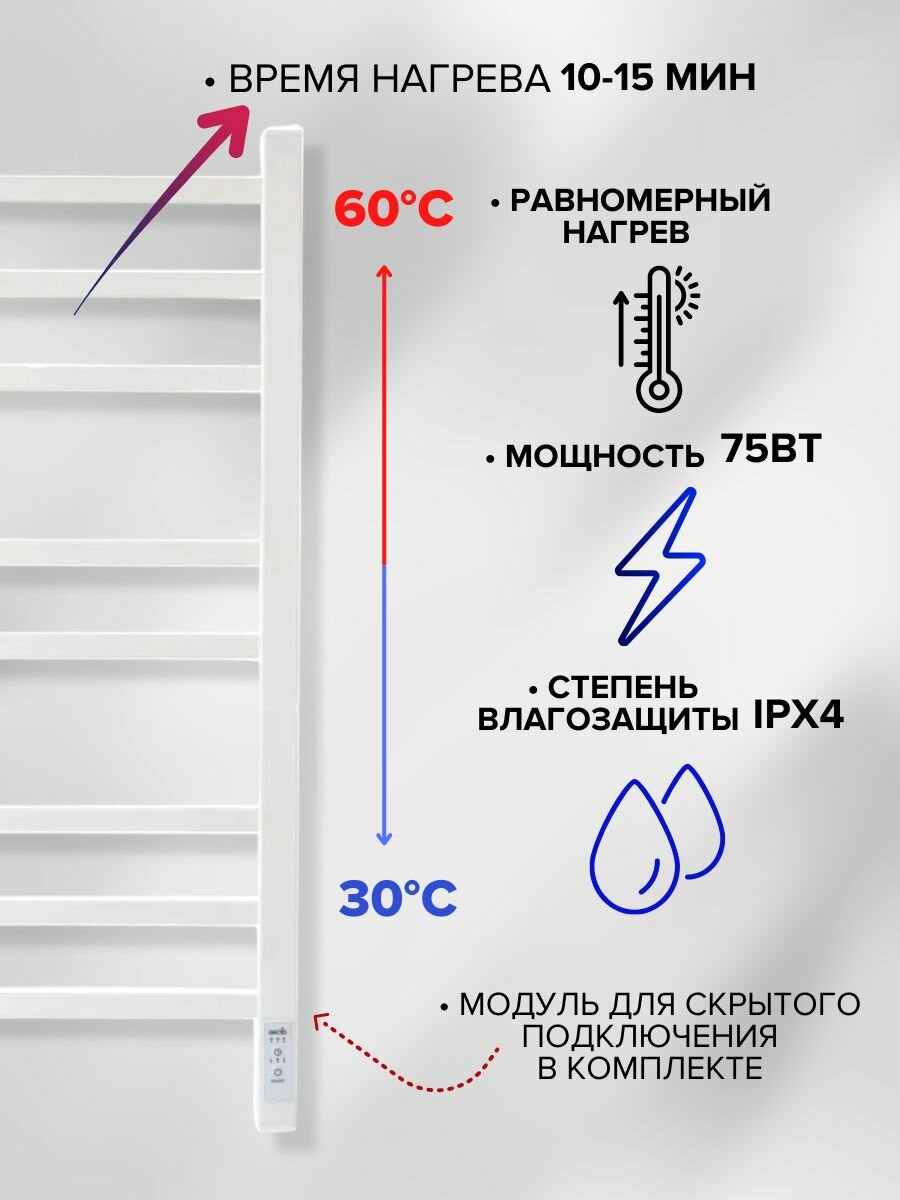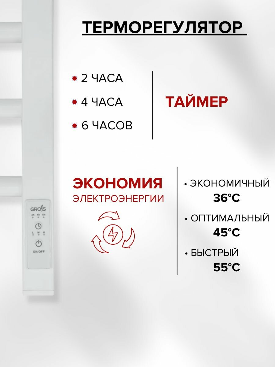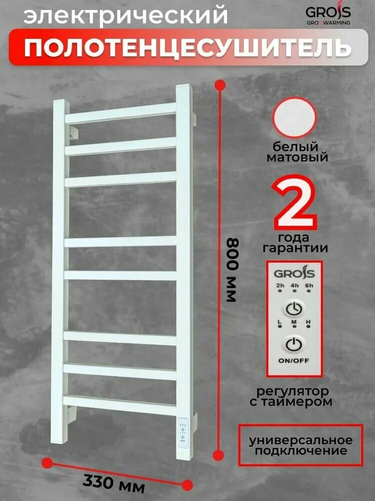 Полотенцесушитель электрический Grois Alex GR-101 400мм 600мм П6 белый матовый подключение универсальное форма Лесенка