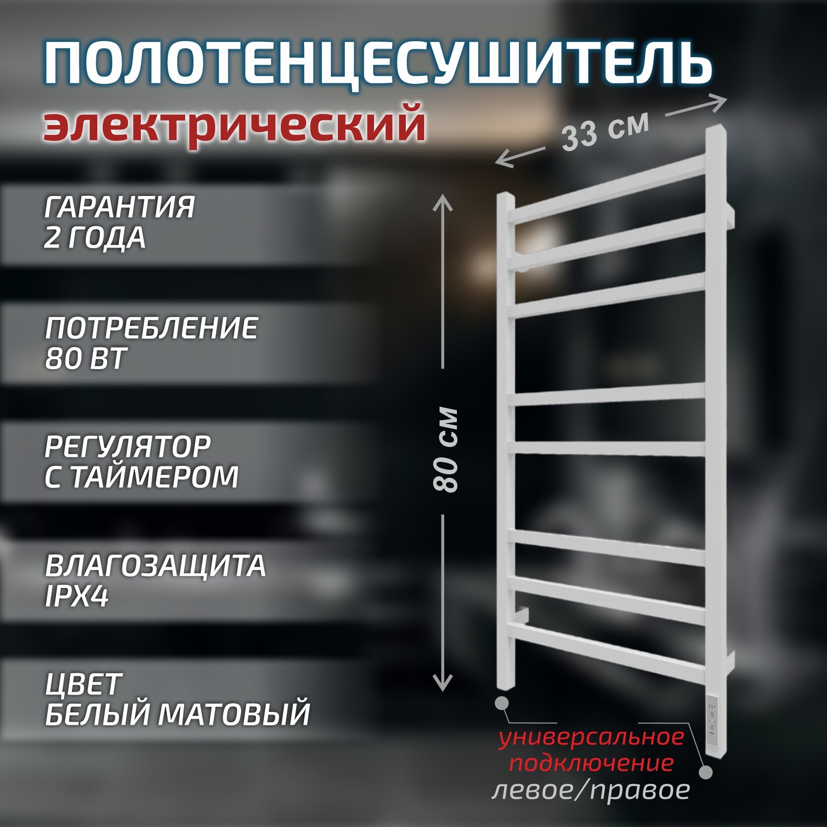 СохранитьПолотенцесушитель электрический Alex GR-102 300мм 800мм П8 белый матовый узкий подключение универсальное форма Лесенка интересное: