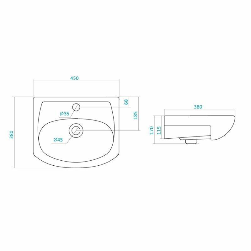 Раковина-умывальник Santek Азов 45 отверстие под смеситель 1WH112449